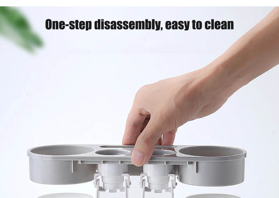 Features1. Large capacity saves space with 5 dust-proof toothbrush slots, 4 cups, 2 hands-free toothpaste dispensers (including toothpaste squeezers).2. Toothbrush slot with lid and inverted cup design, dustproof, fast drain,3. Made of high quality ABS and food grade environmentally friendly silicone. Non-toxic, no odor, environmentally safe, durable.4. Punch-free design, easy to install5. Packaging optimization: inflatable packaging, effective earthquake resistanceInstallation NotesWhen installing the sticker, first wipe the wall, then squeeze the air between the sticker and the wall, do not remove the sticker and repeat the installation.SpecificationColor: Blue / Gray / Green / Light PinkSize: 25.4x15.6cmWeight: 743gMaterial: ABSNote:· The actual manual measurement size may have some errors. The actual size is subject to the actual product.