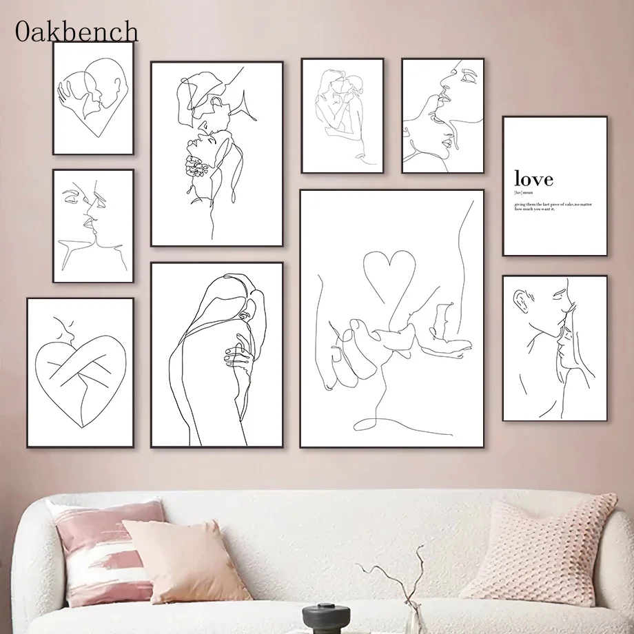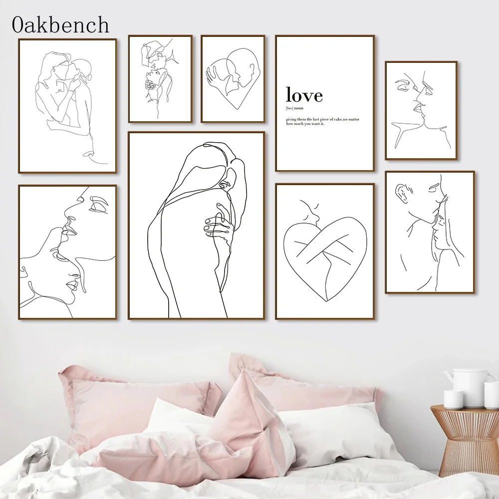 Черно-белая Картина на холсте, Постер человеческих линий, сексуальн...