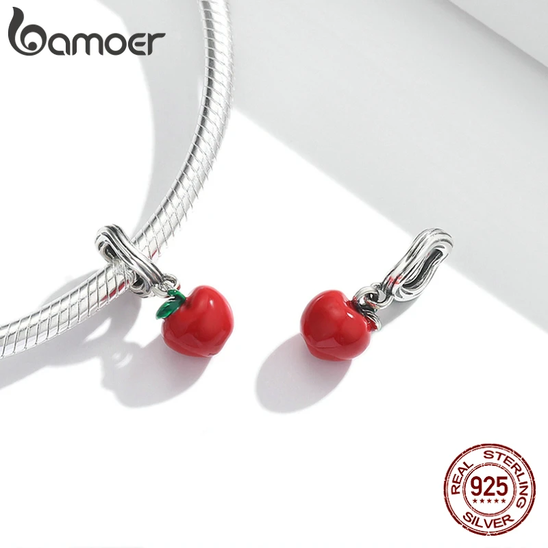 Bamoer, Стерлинговое Серебро 925 пробы, ювелирное изделие, зеленая эмаль, авокадо, фруктовый Шарм, оригинальный серебряный браслет, 3 мм, женское ювелирное изделие, BSC129
