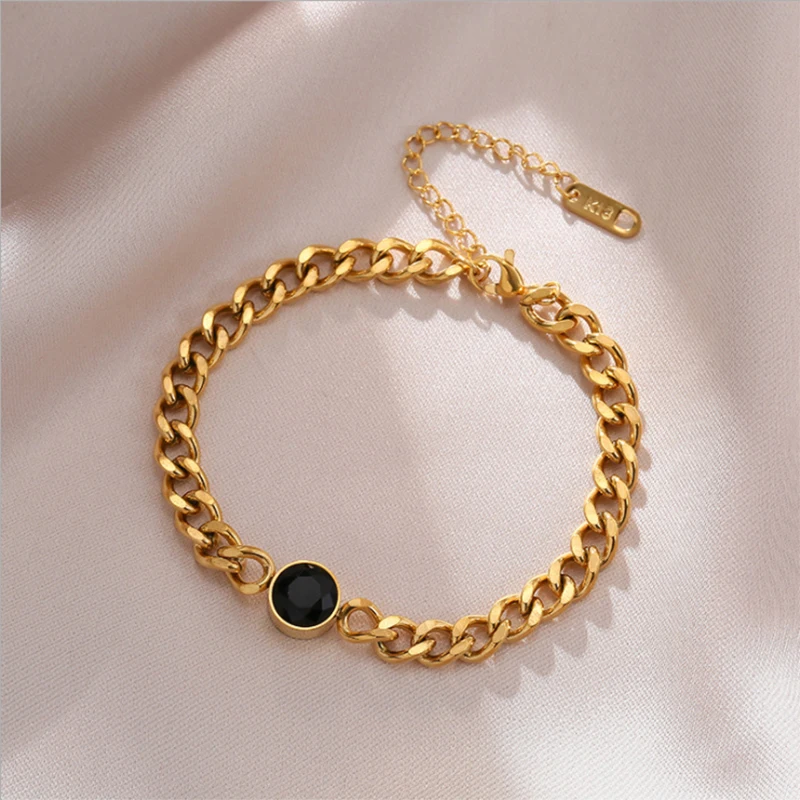 Женский и мужской браслет MEYRROYU, толстая цепочка из нержавеющей стали черного и золотого цвета с кристаллами, вечерние