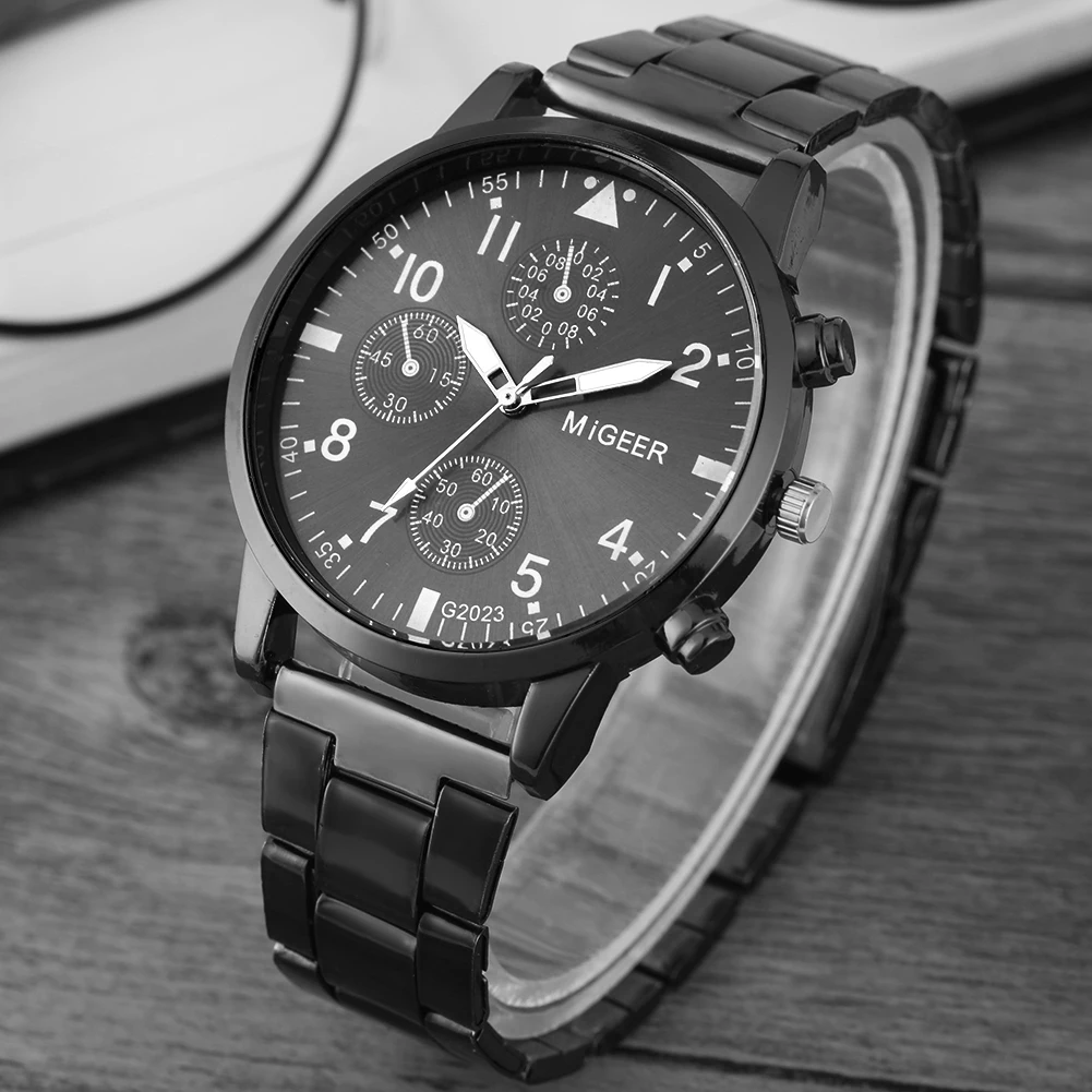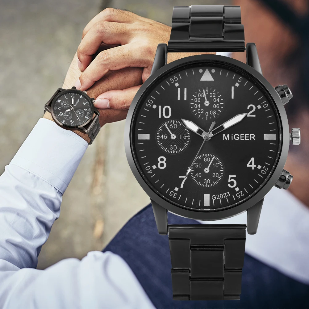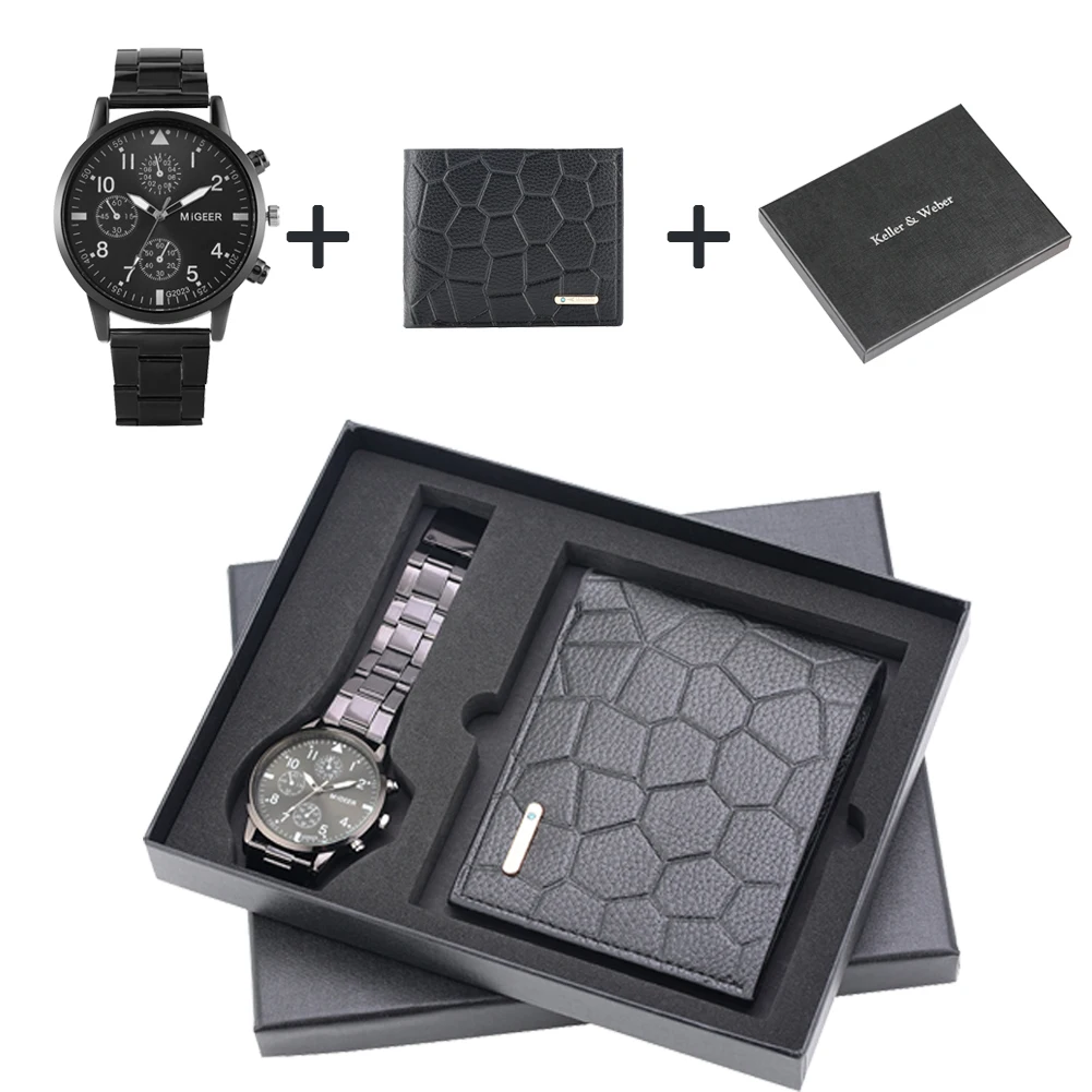 Набор модных мужских наручных часов с бумажником и ремешком из нержавеющей стали