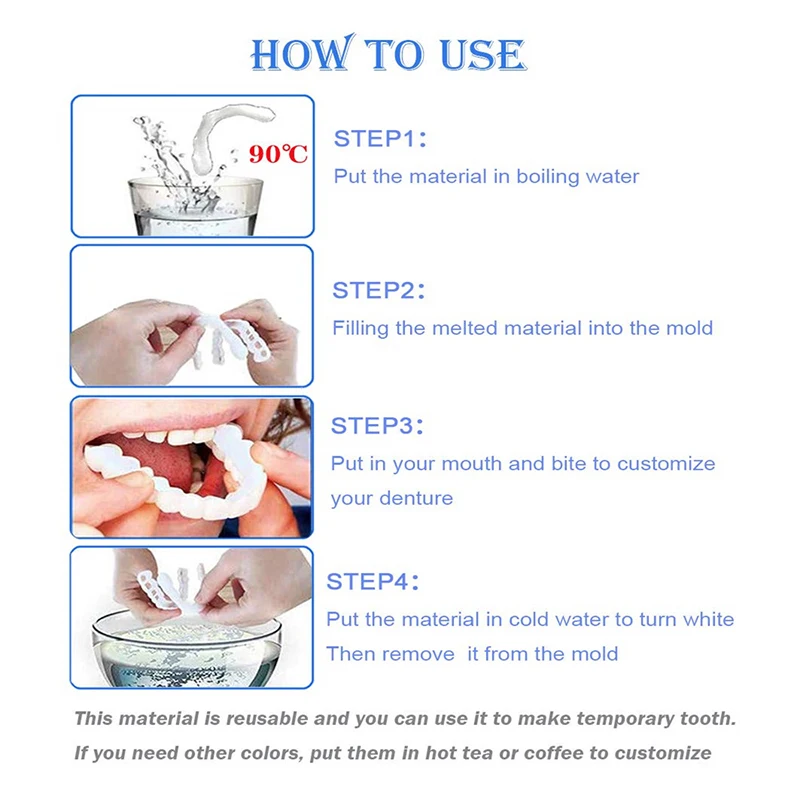 Искусственные зубы, виниры, накладные зубы, ярко-белые зубы, мгновенная улыбка, сверху и сзади, цемент, Прямая поставка