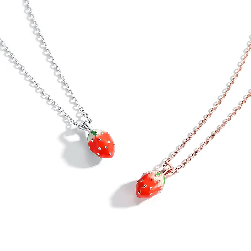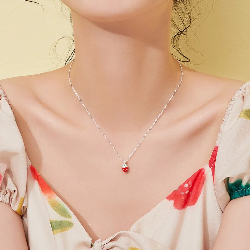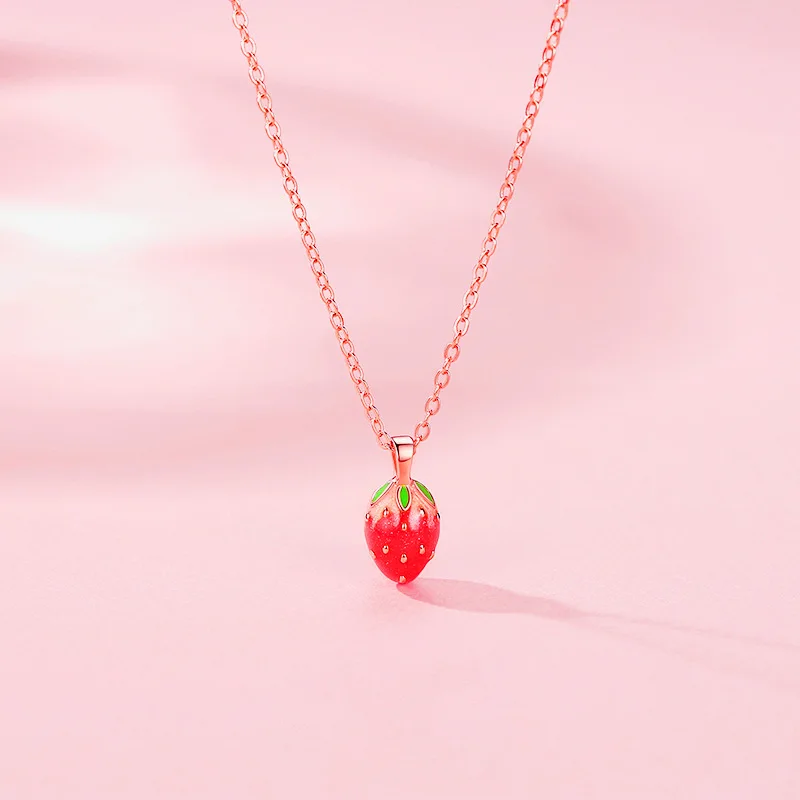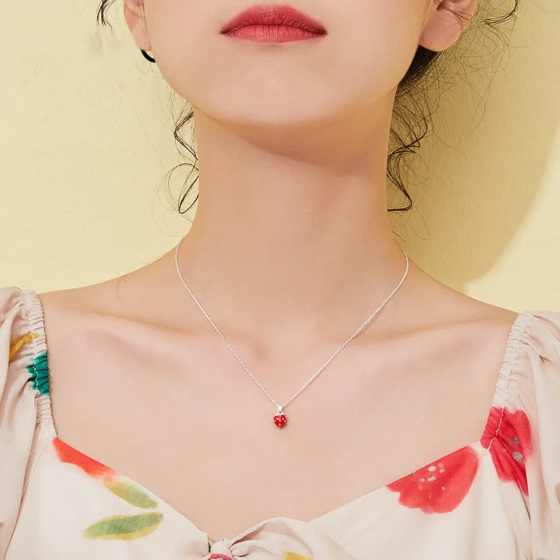 PDZ91 ожерелье с клубничкой женское, Стерлинговое Серебро Простой студенческий Лес Свежий до ключиц цепочка Девушка сердце Персик ожерельлье цветок