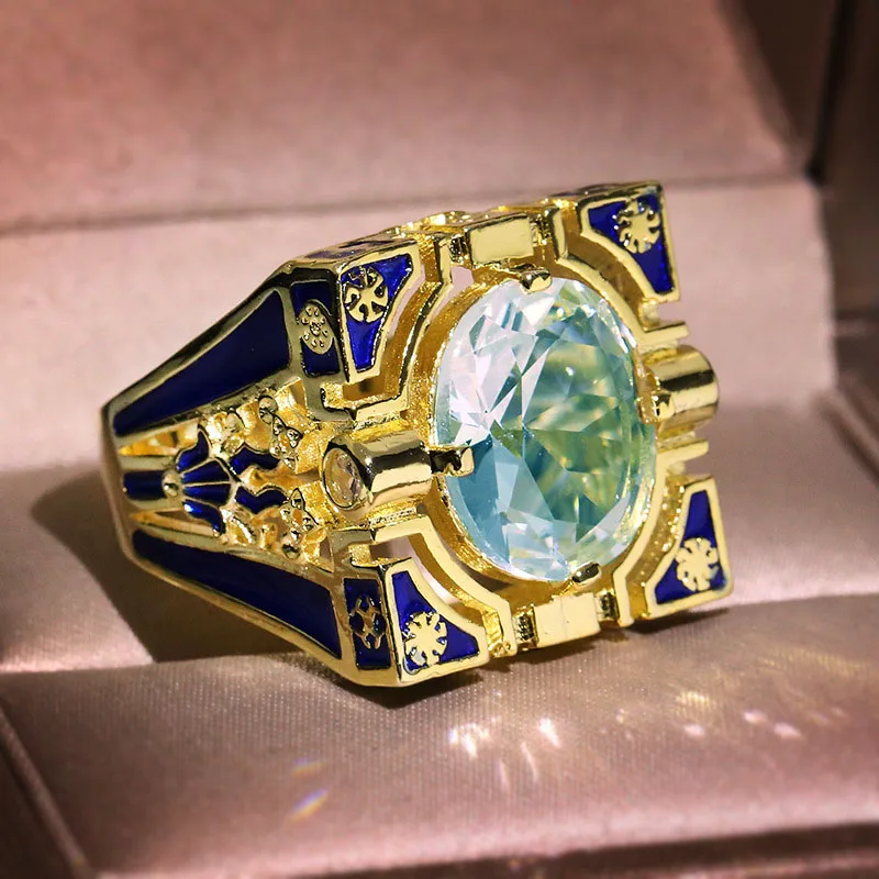Роскошные в виде геометрических фигур кольца с синим кристаллом для...