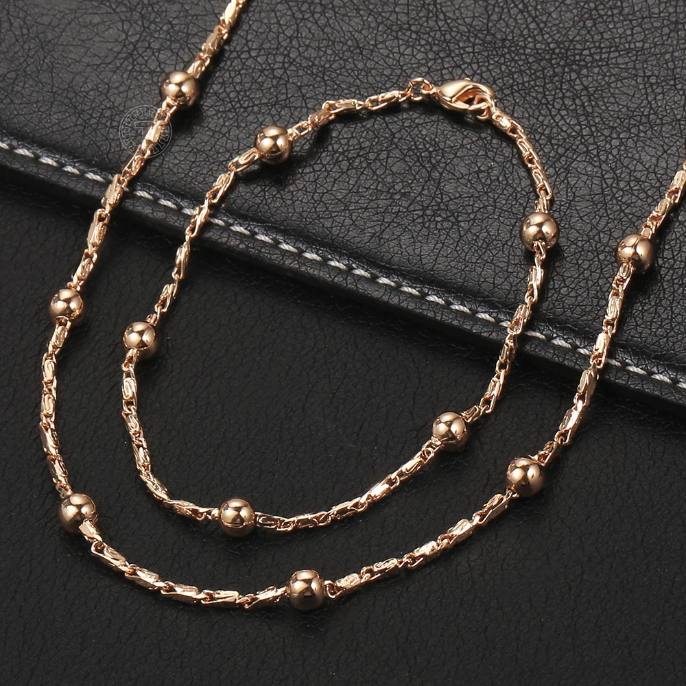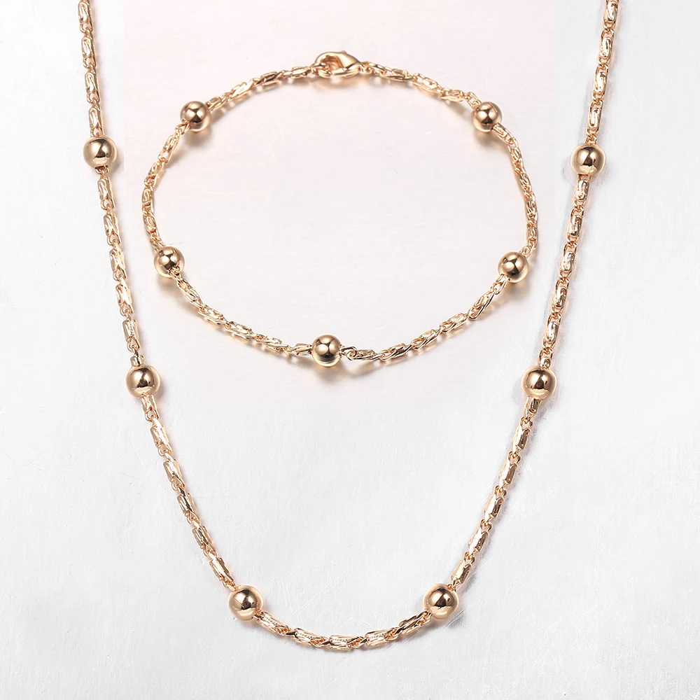 Мода 585, розовое золото, шар, ожерелье, браслет, набор для женщин, спутниковая цепочка, элегантный свадебный комплект ювелирных изделий CS26