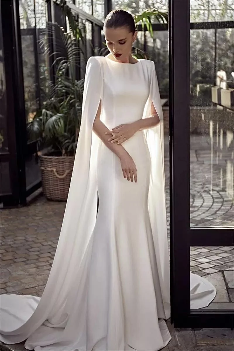 Элегантное свадебное платье-Русалка с рукавами-шальками, Кружевная аппликация, пятнистая Иллюзия сзади, богемный пляж, белая накидка, платья невесты, Новинка