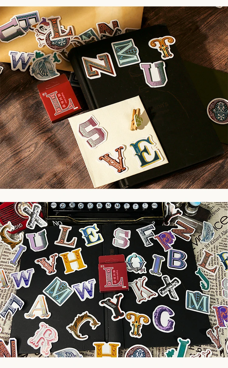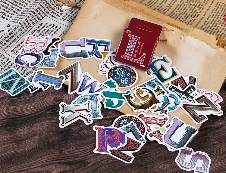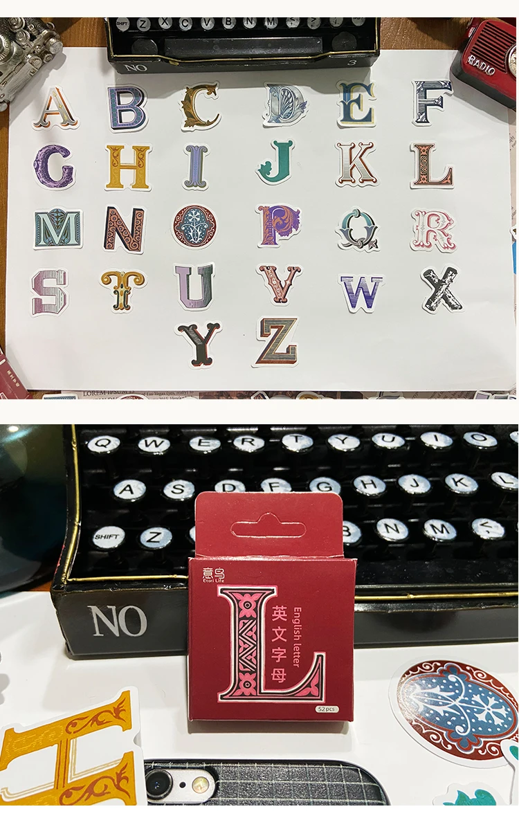 52 шт. Набор наклеек с английским алфавитом в винтажном стиле, декоративные дневники, планер, сделай сам, скрапбукинг, принадлежности для дневника