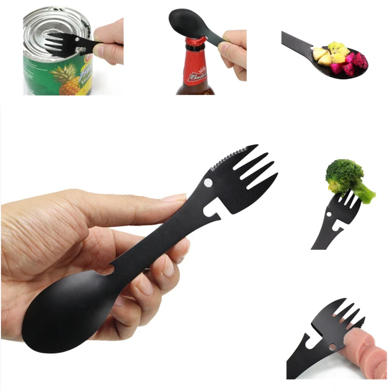 Многофункциональная кухонная посуда для кемпинга, открывалка-ложка,...