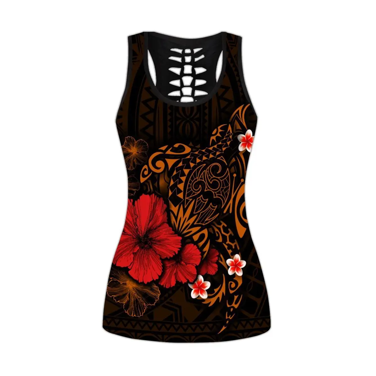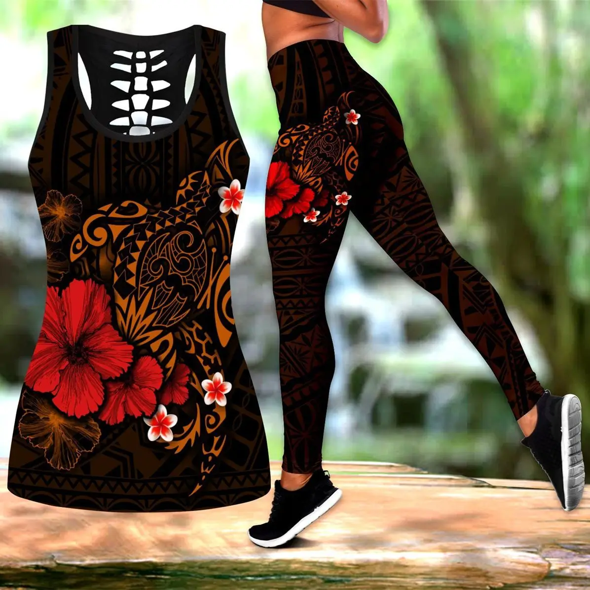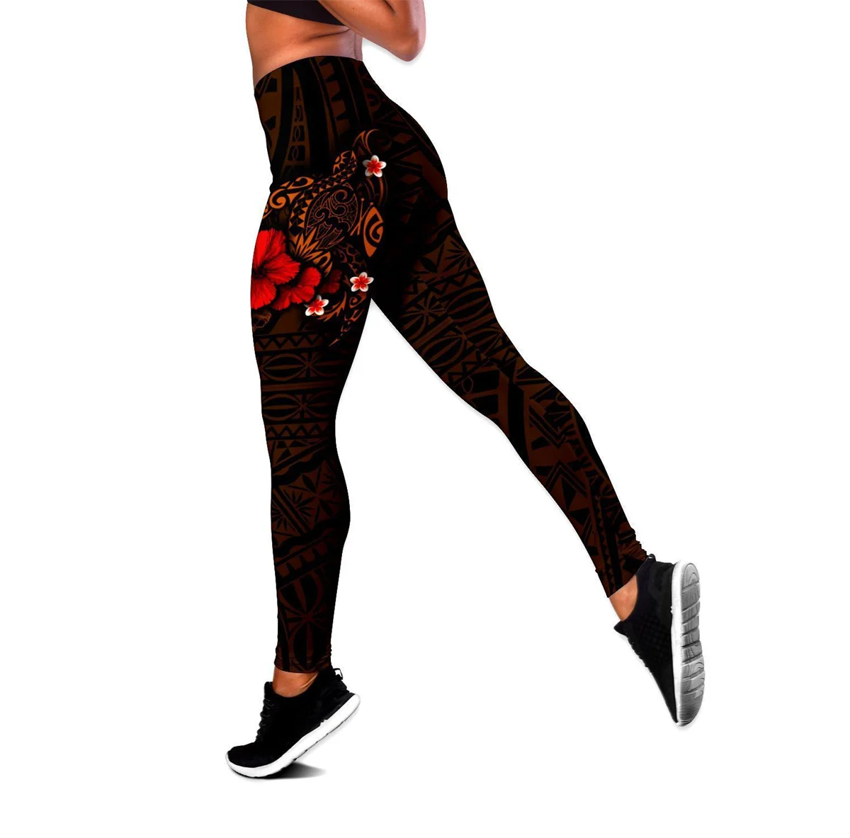 Великолепные полинезийские леггинсы с 3D-принтом черепахи и гибиску...