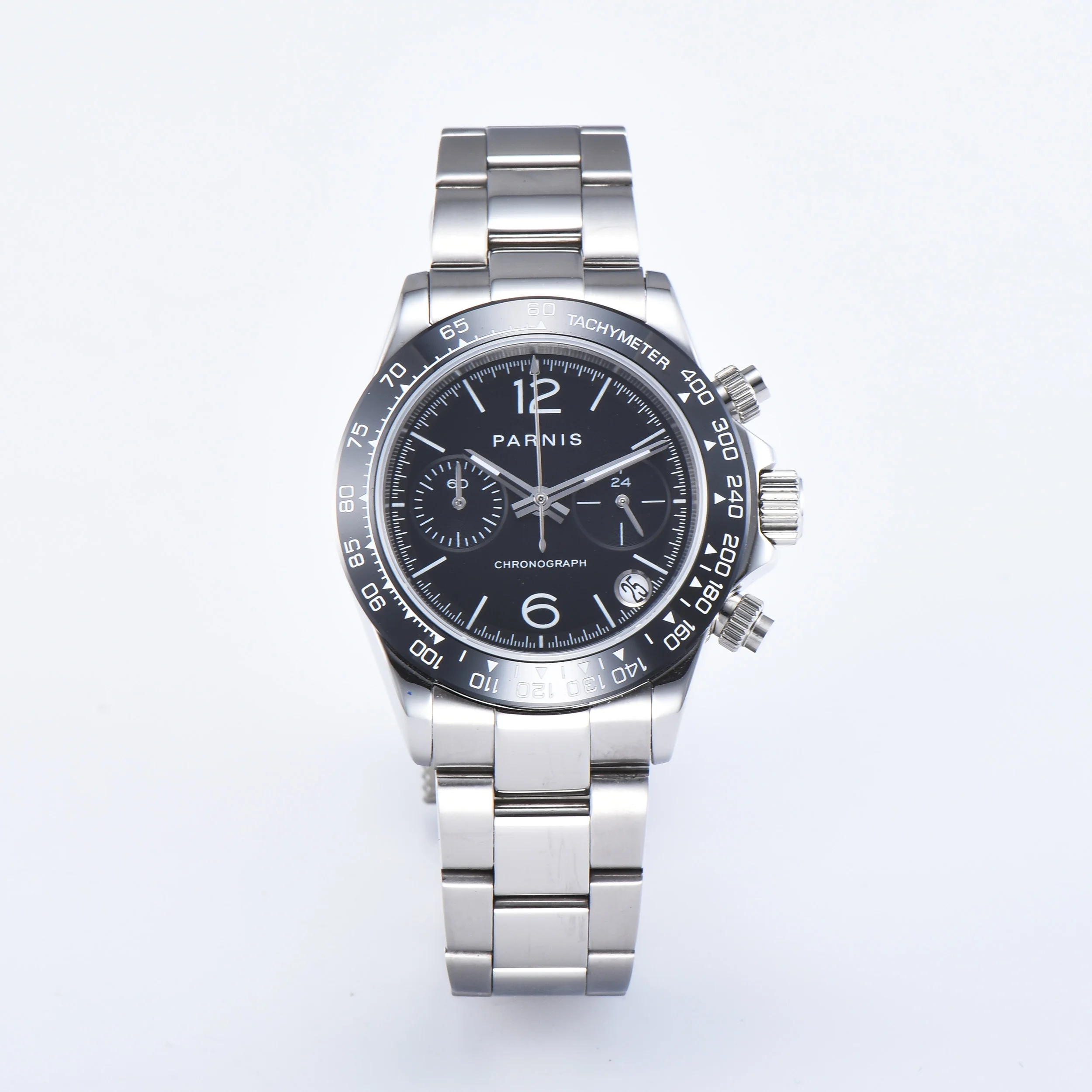 Мужские кварцевые часы Parnis 39 мм со стальным браслетом и хроногр...