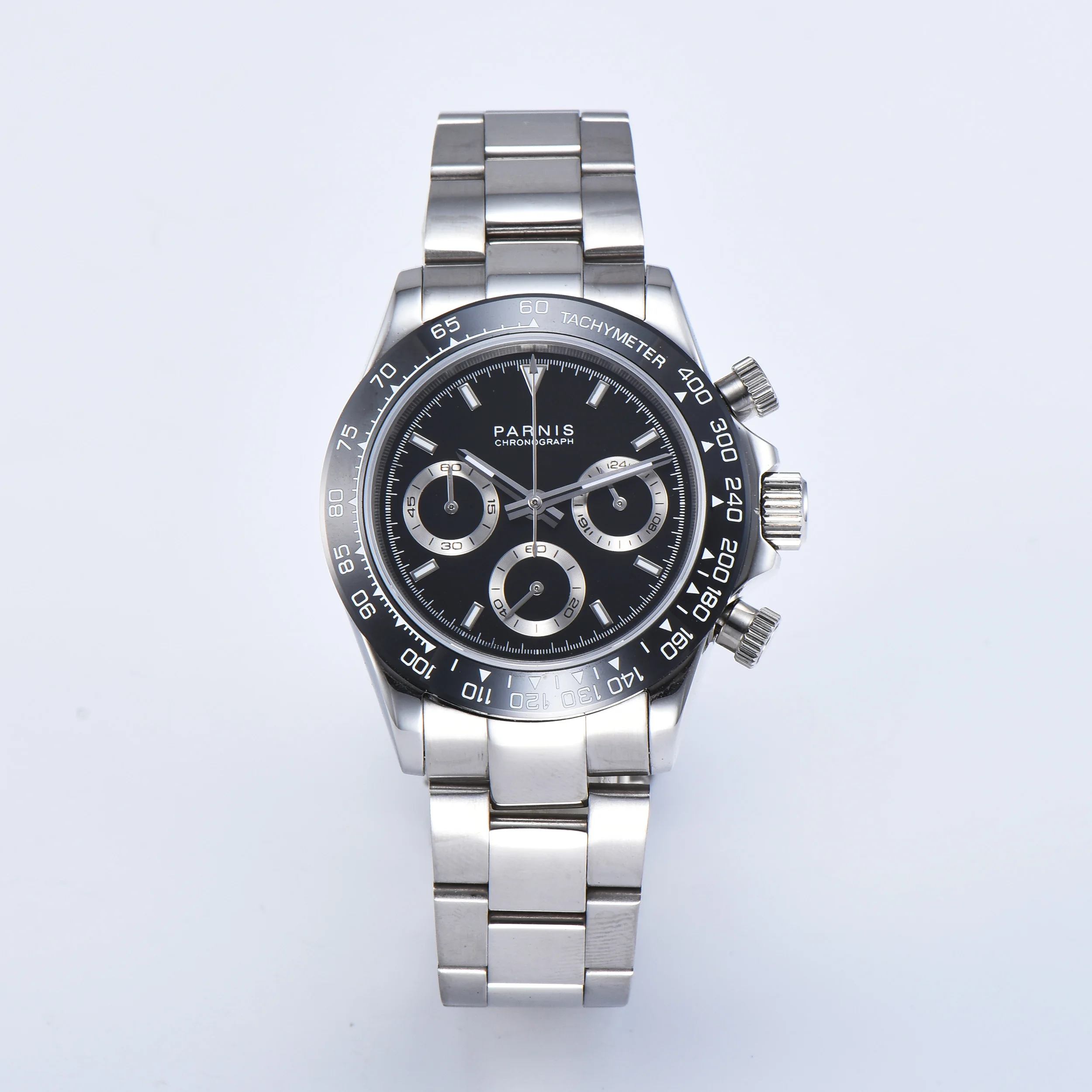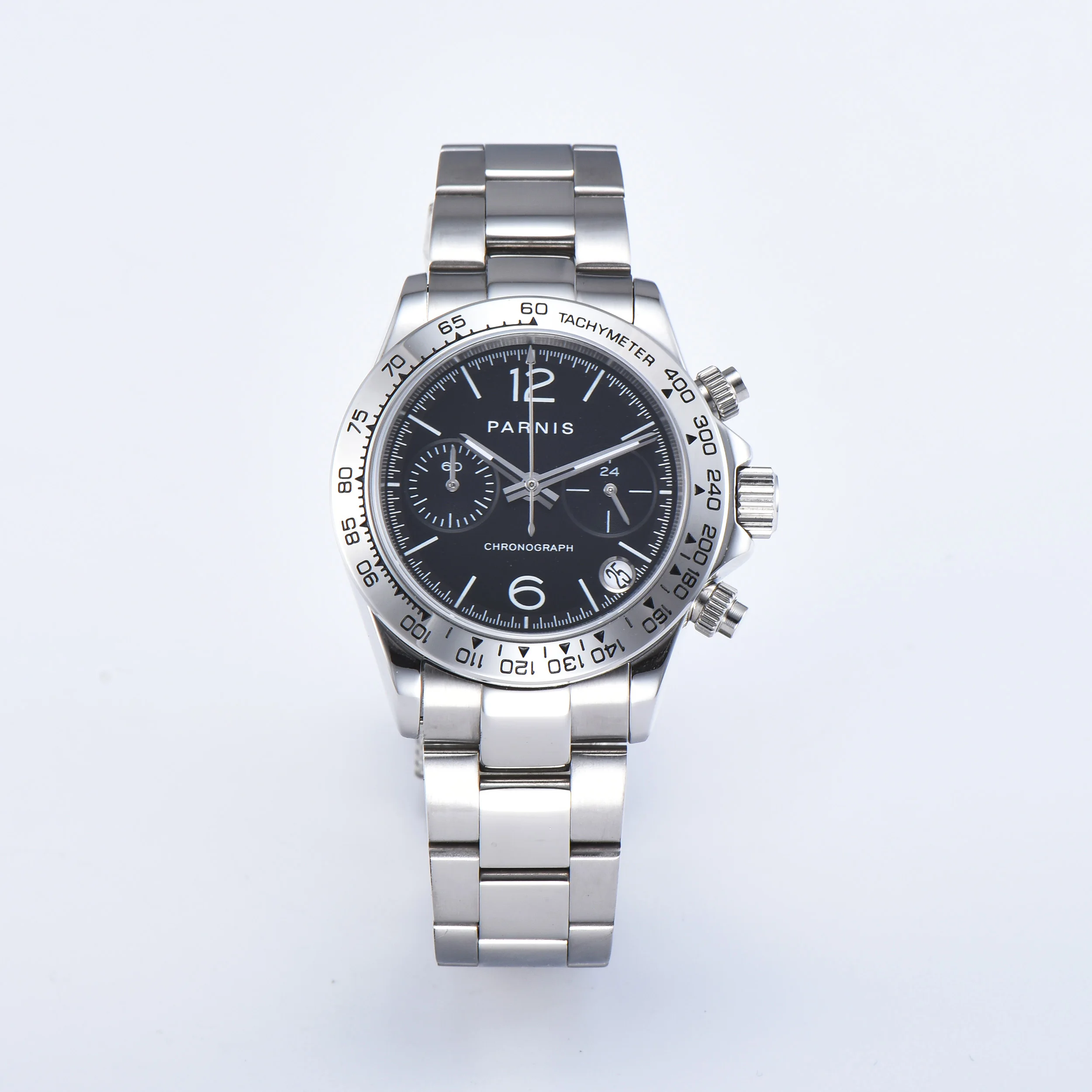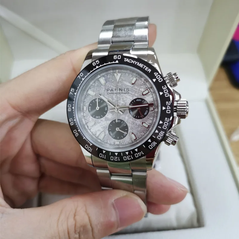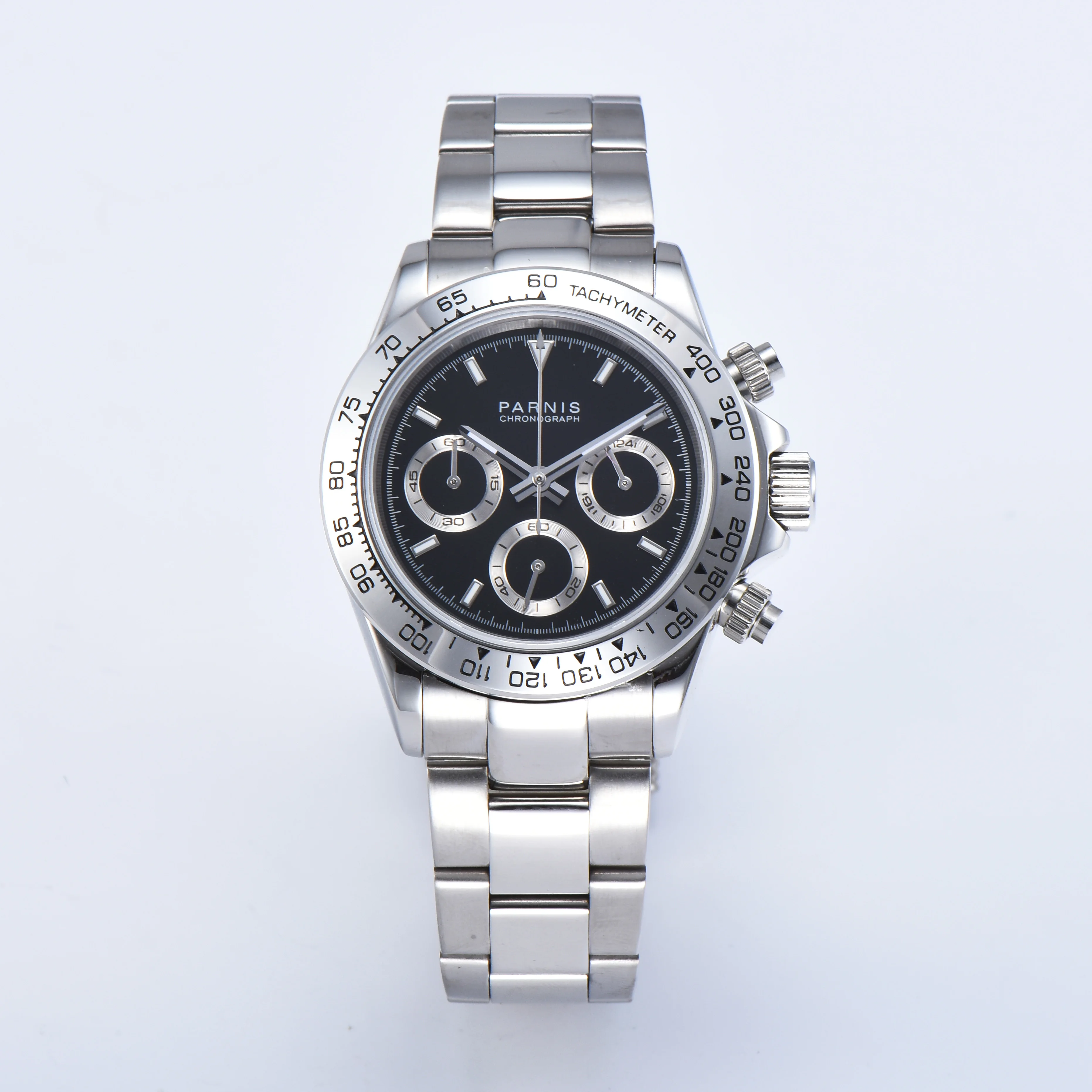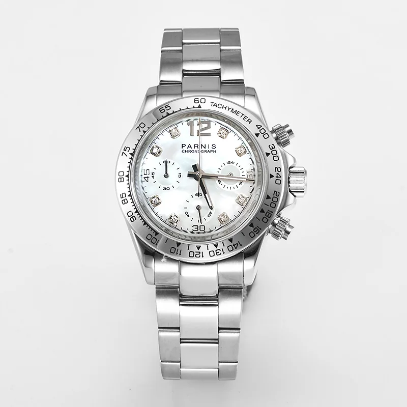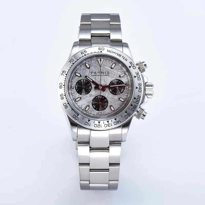 Часы Parnis мужские из нержавеющей стали, 39 мм, серебристый чехол с кварцевым хронографом и сапфировым стеклом, 2021 японский механизм с g