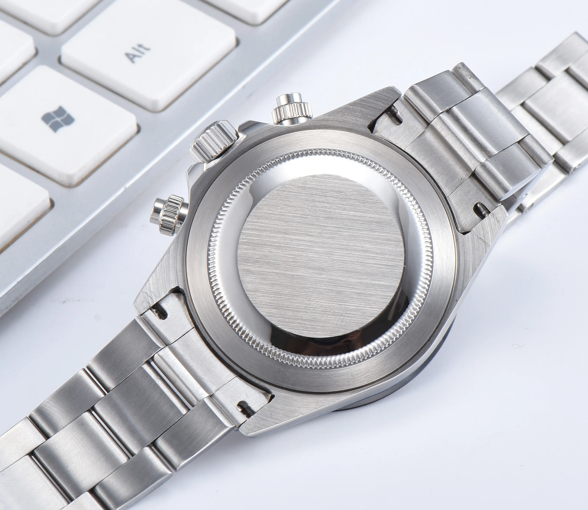 Механизм: кварцевый хронограф в комплектеДиаметр корпуса: 39 мм толщина коробки: 13,3 мм Материал корпуса: полированная нержавеющая сталь 316L с керамикой кнопка толкателя в 2:00 кнопка запуска/остановки в 4:00 сбрасывает хронограф в 9:00 А до 3 24 часов секундный циферблат в 6 часов Ширина браслета: 20 мм ширина ремешка: сапфировое стекло стежка застежки: развертывание