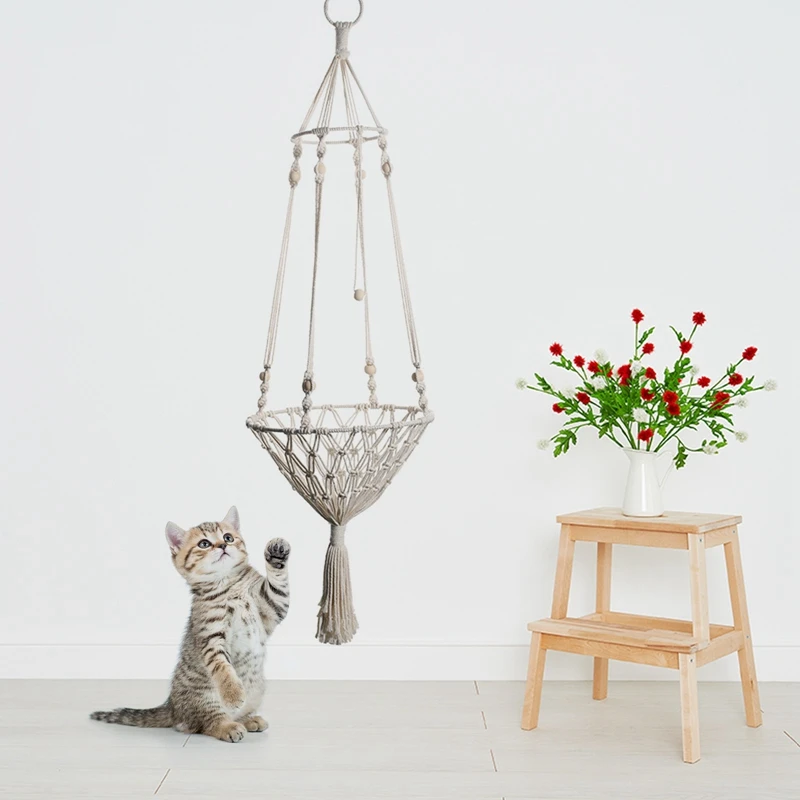 Тканый летний гамак для кошек ручной работы в богемном стиле, хлопковая веревка, подвесная кровать, спальная корзина для котят, домик для котят, товары для домашних животных
