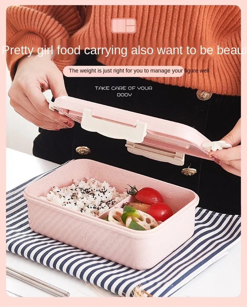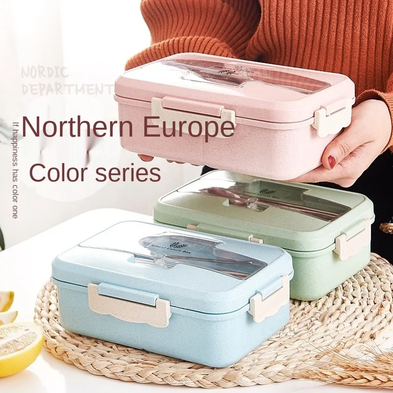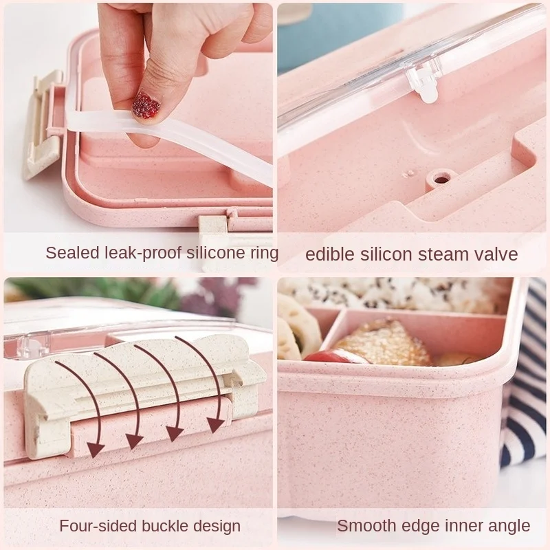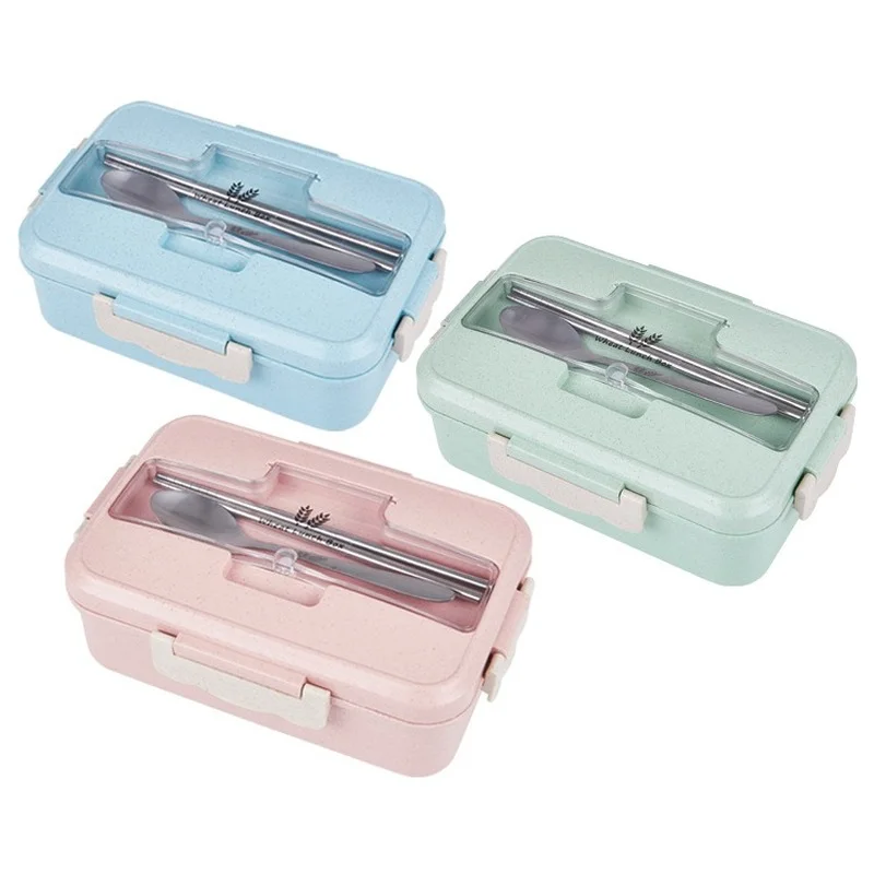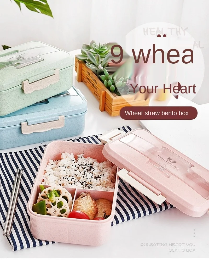 Ланч-бокс с 3 ячейками для микроволновой печи, посуда из пшеничной соломы, контейнер для хранения еды, детский школьный офис