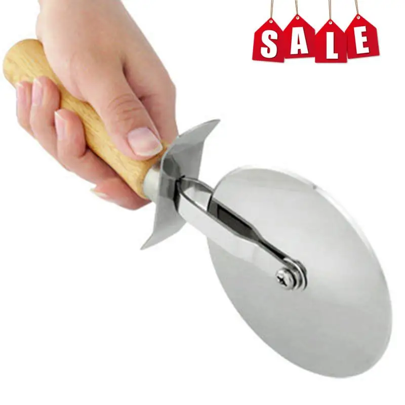 Нож для пиццы из нержавеющей стали, круглая деревянная ручка, инстр...