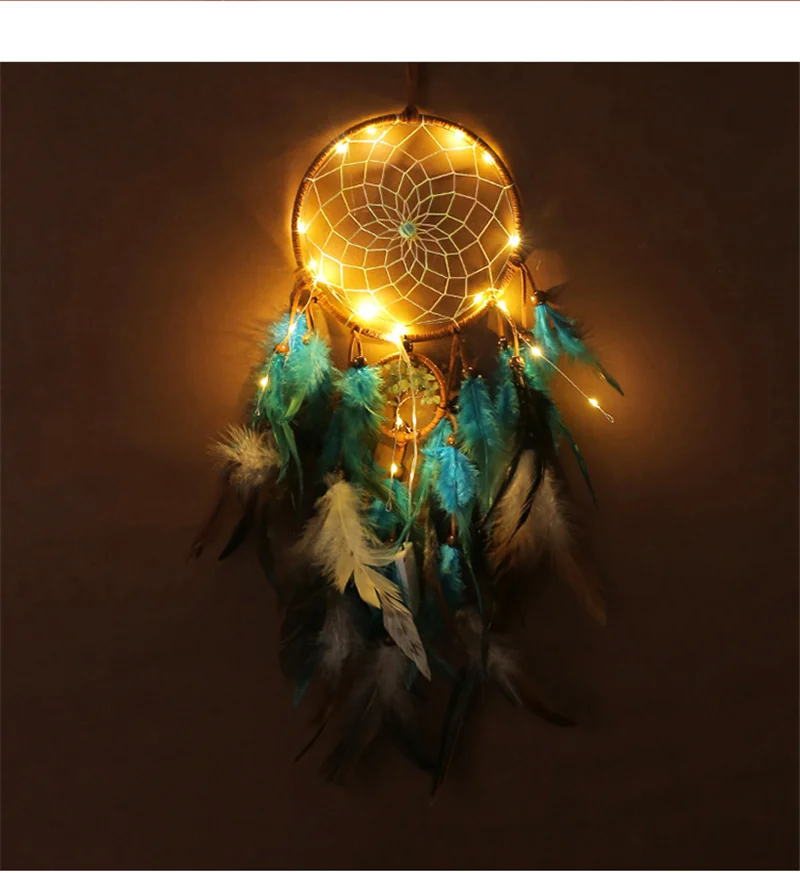 Красивый Ловец снов светодиодный с перьями, ручной работы Ловец сно...