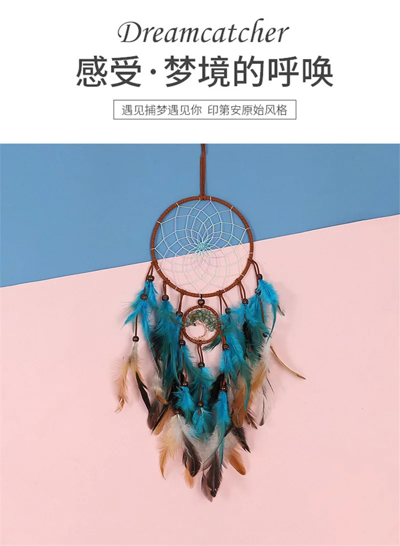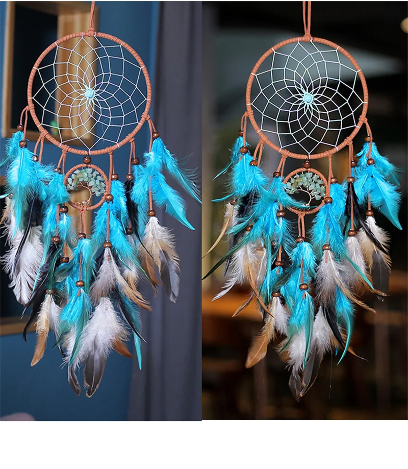 Ловец снов, голубое дерево жизни с перьями, Настенный декор, спальн...