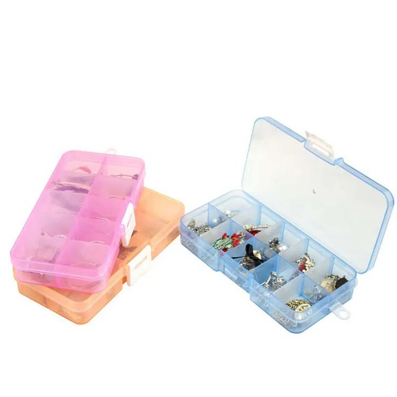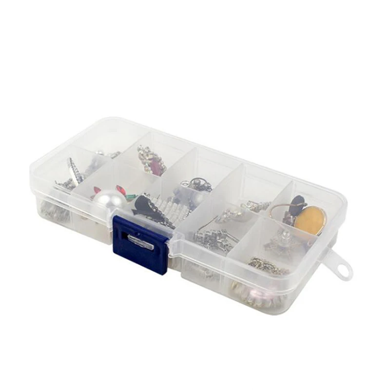 Пластиковая шкатулка для хранения драгоценностей, 10 отделений, регулируемый контейнер для бисера, сережек, прямоугольная шкатулка, чехол
