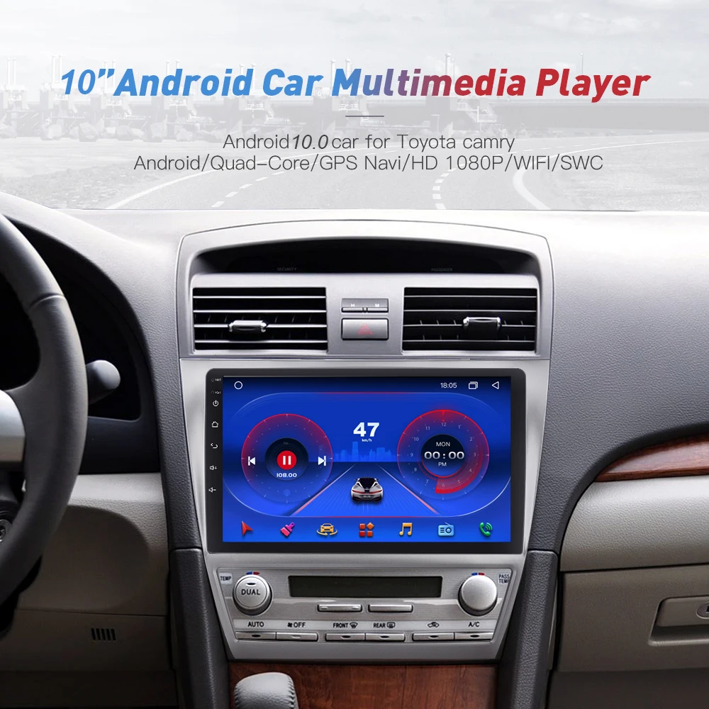Мультимедийная магнитола T5 для Toyota Camry, мультимедийный видеоплеер на Android 10, экран 10 дюймов, 4 Гб + 64 ГБ, GPS, Wi-Fi, типоразмер 2 Din, для Toyota Camry 360-2007