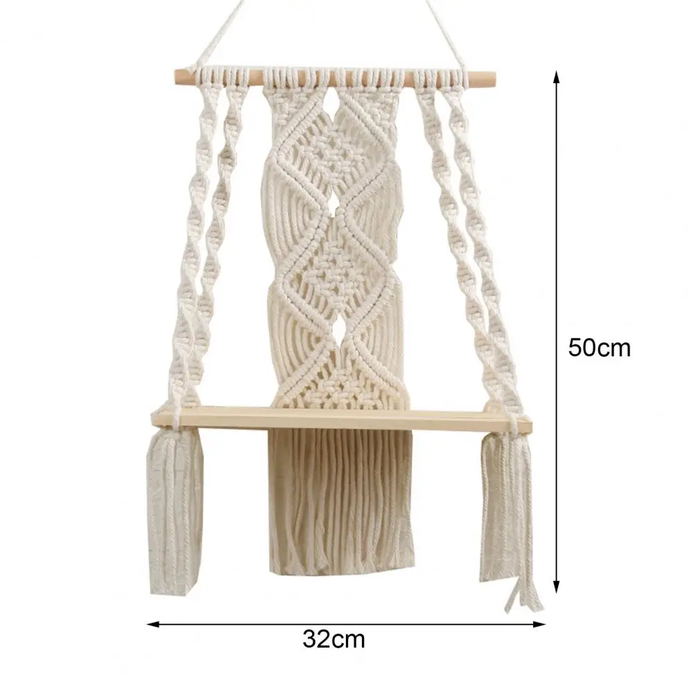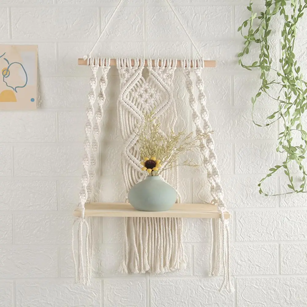 Плетеная вешалка для растений в стиле бохо, настенная полка, плетеные деревянные богемные макраме, настенные подвесные полки для гостиной