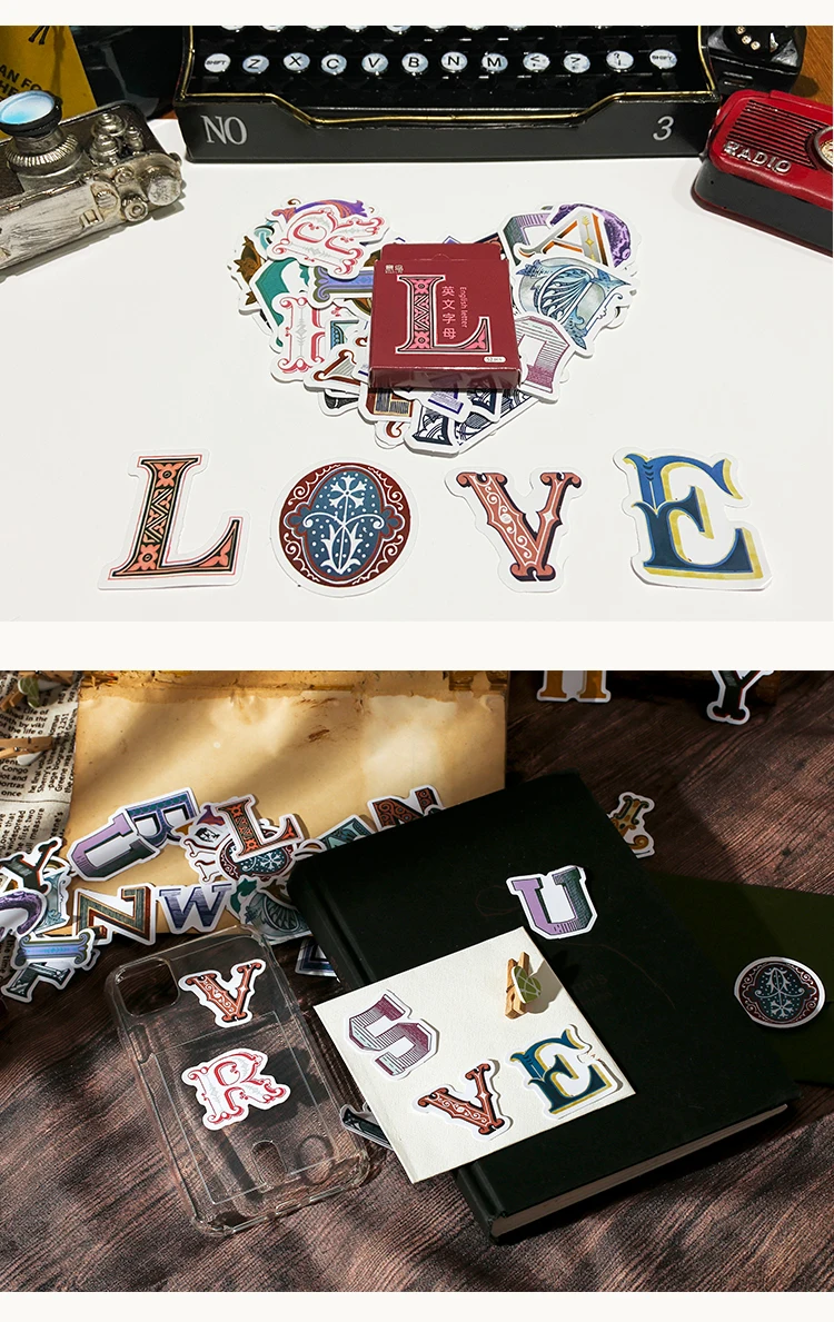 52 шт. Набор наклеек с английским алфавитом в винтажном стиле, деко...