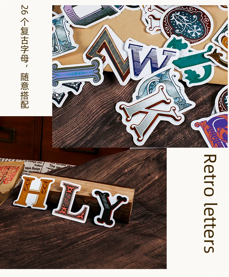 Винтажный английский 26 наклейки в виде букв 52 шт.кор. ретро-плани...