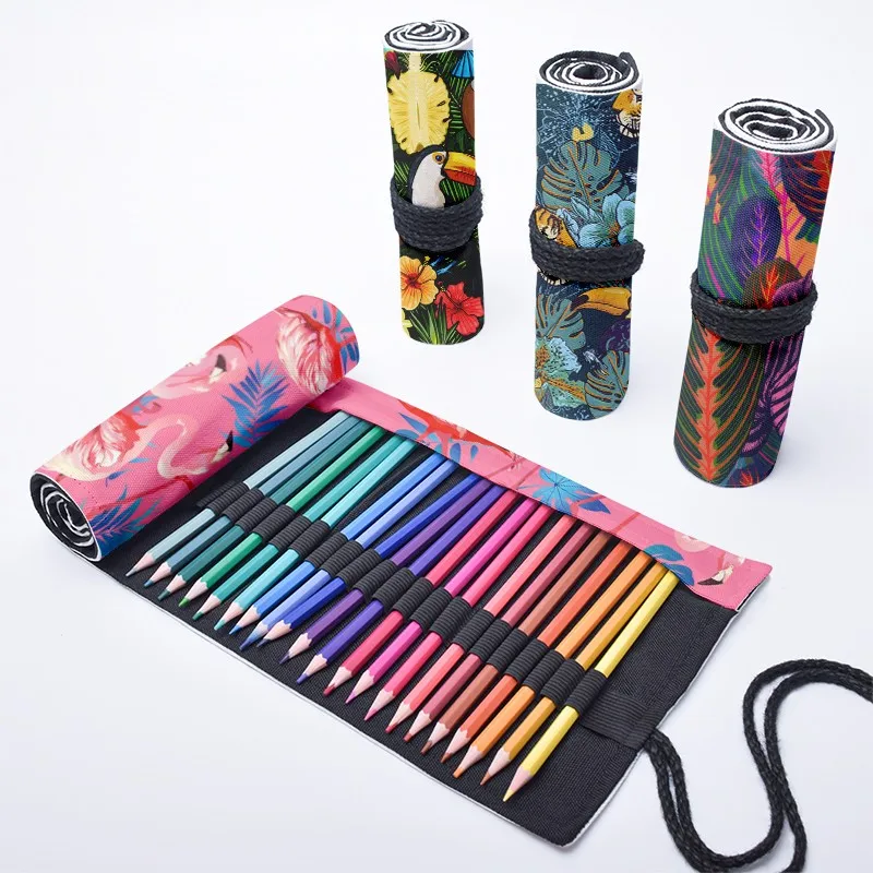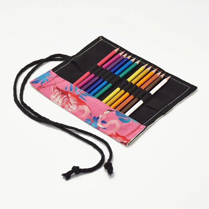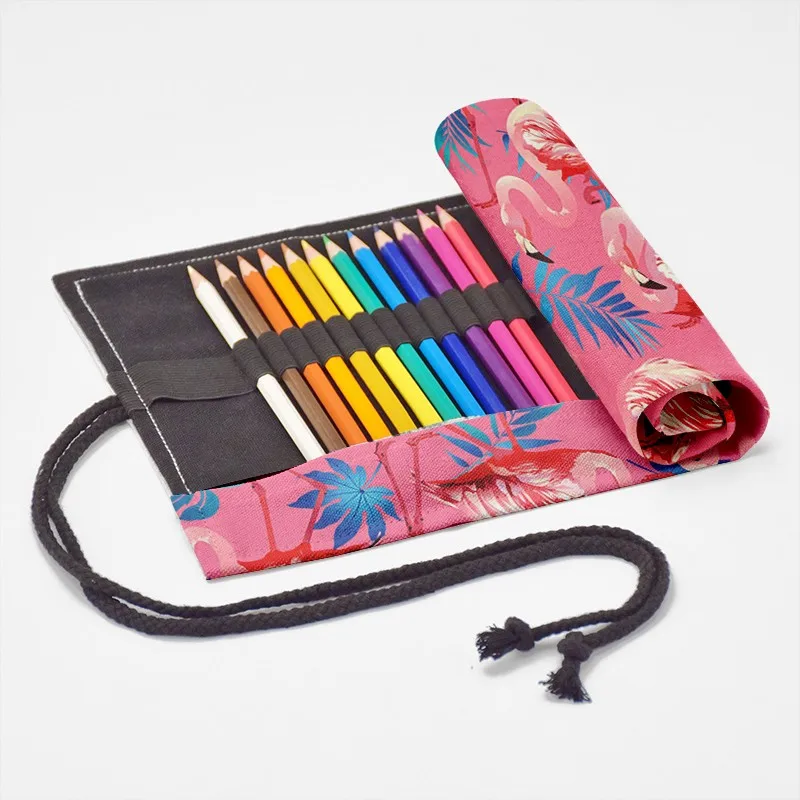 Фламинго С напечатаным холстом ручка Шторы для Забавные футболки унисекс с рисунком животных, тигра и Зебра Карандаш Чехол 12/24/36/48/72 отверстия рисунок флеш-накопитель сумка