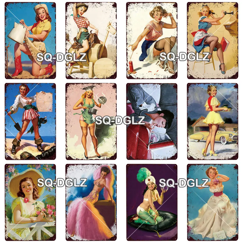 SQ-DGLZ Pinup Girl металлическая табличка, винтажный стиль, Настенный декор для бара, паба, металлические поделки, ретро-постер вечерние, подарок на заказ