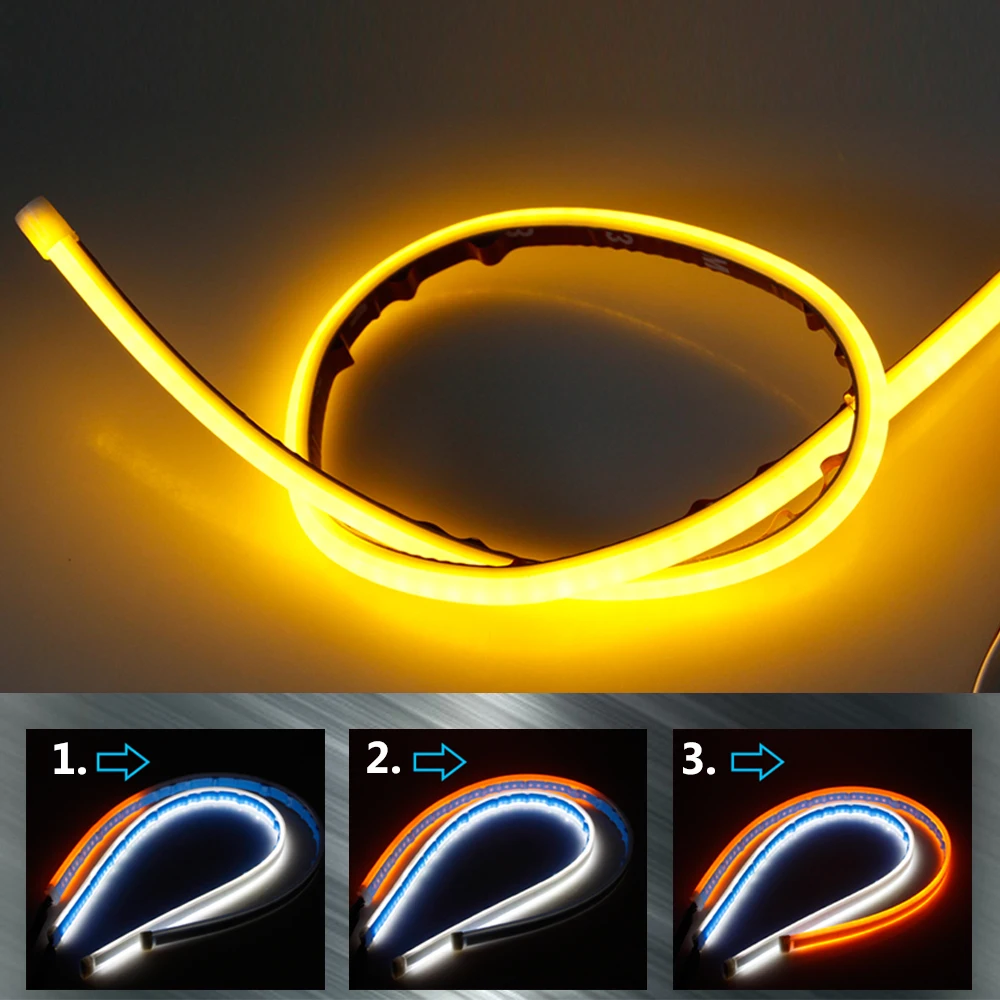 2 шт. DRL 304560 см дневной ходовой светильник Гибкая мягкая трубка направляющая автомобильная светодиодная лента белый красный сигнал поворота желтый Водонепроницаемый CJ