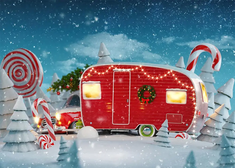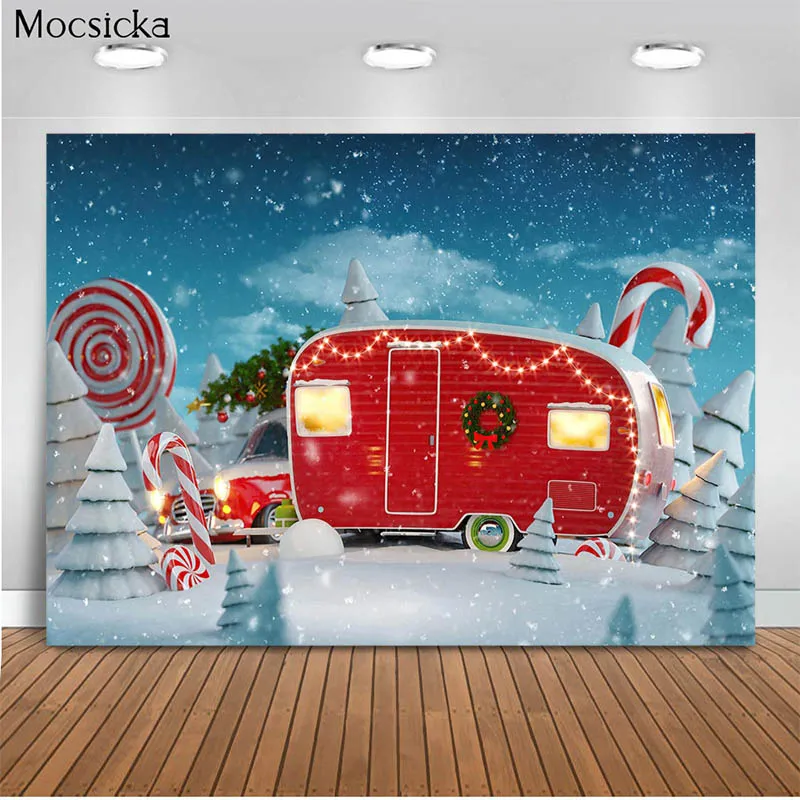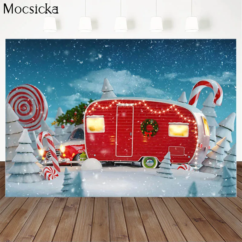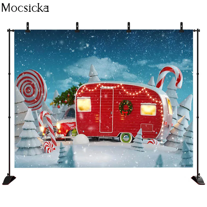 Фон для студийной фотосъемки детей с изображением рождественской елки Красного автомобиля леденца