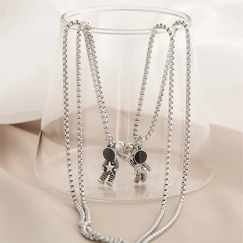 Пары, подходящее ожерелье с кулоном космонавта, магнитное ожерелье ...