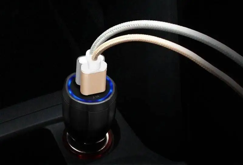 * Зарядное устройство с двумя портами USB. 2 usb-порта можно заряжать одновременно, он может поддерживать различные мобильные терминалы, используемые в автомобиле, такие как мобильный телефон, iPad, PSP, электронная книга, GPS и т. д.