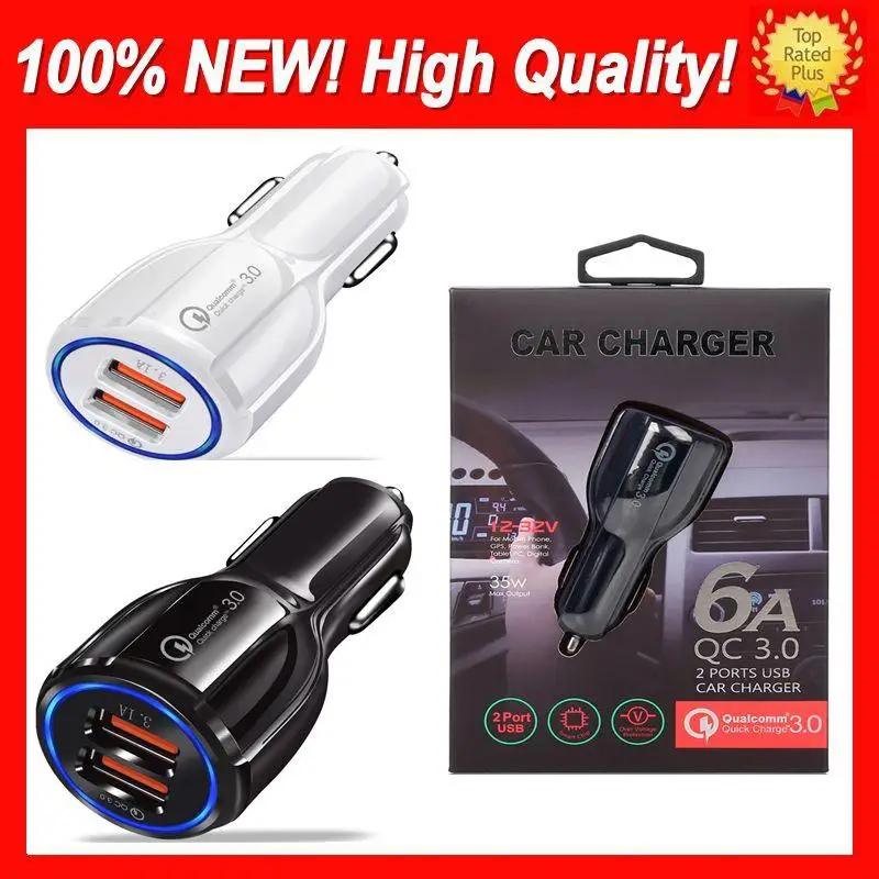 Универсальное автомобильное зарядное устройство USB с коробкой, адаптер для быстрой зарядки, зарядное устройство для телефона, 2 порта USB, Быстрая автомобильная зарядка для Iphone, Samsung, планшетов, автомобилей
