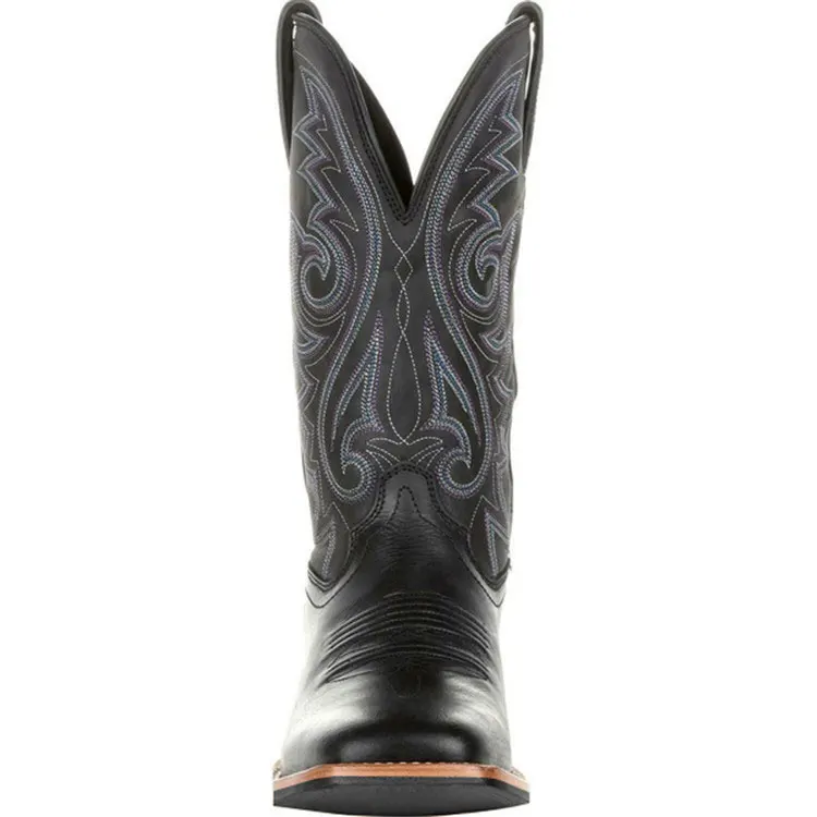 Мужские ковбойские ботинки с вышивкой, черные или коричневые кожаны...