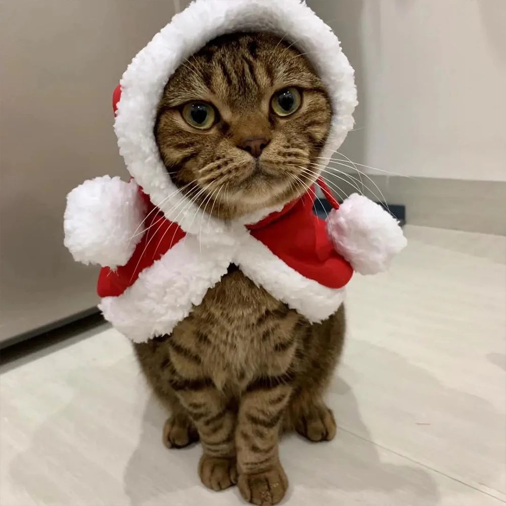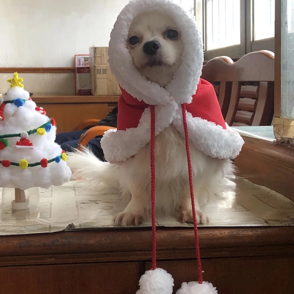 Рождественское пальто для питомцев, собак, кошек, щенков, Санта Клауса, накидка с шапкой, Рождественская теплая одежда, праздничный костюм для питомцев на День Благодарения