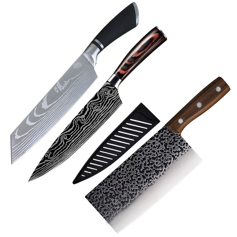 Японский мясной нож шеф-повара Тесак из Нержавеющей Стали Дамаск кухонный нож для филе мяса говядины овощей кухонная утварь инструменты