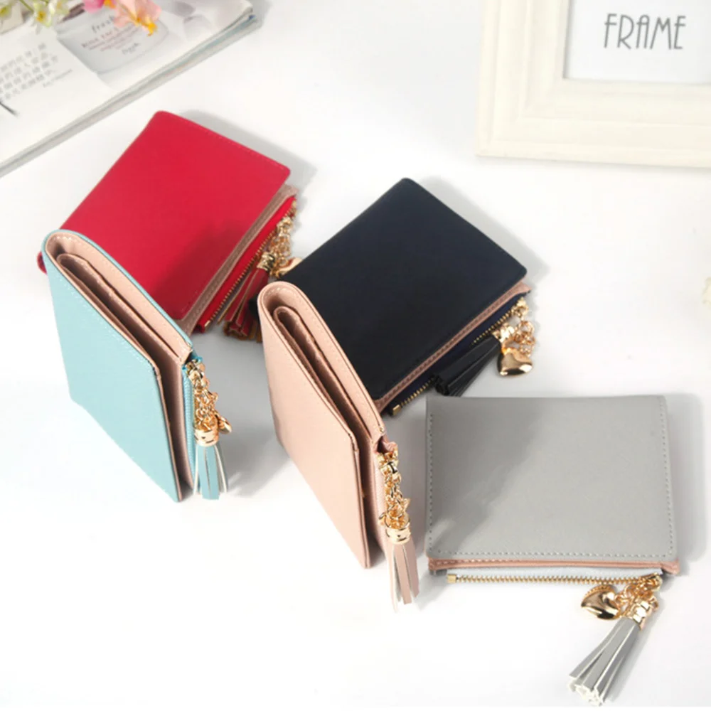 Женский кошелек с кисточкой 2020, маленький симпатичный кошелек, женские короткие кожаные кошельки, кошельки на молнии, Женский кошелек, клатч, сумки