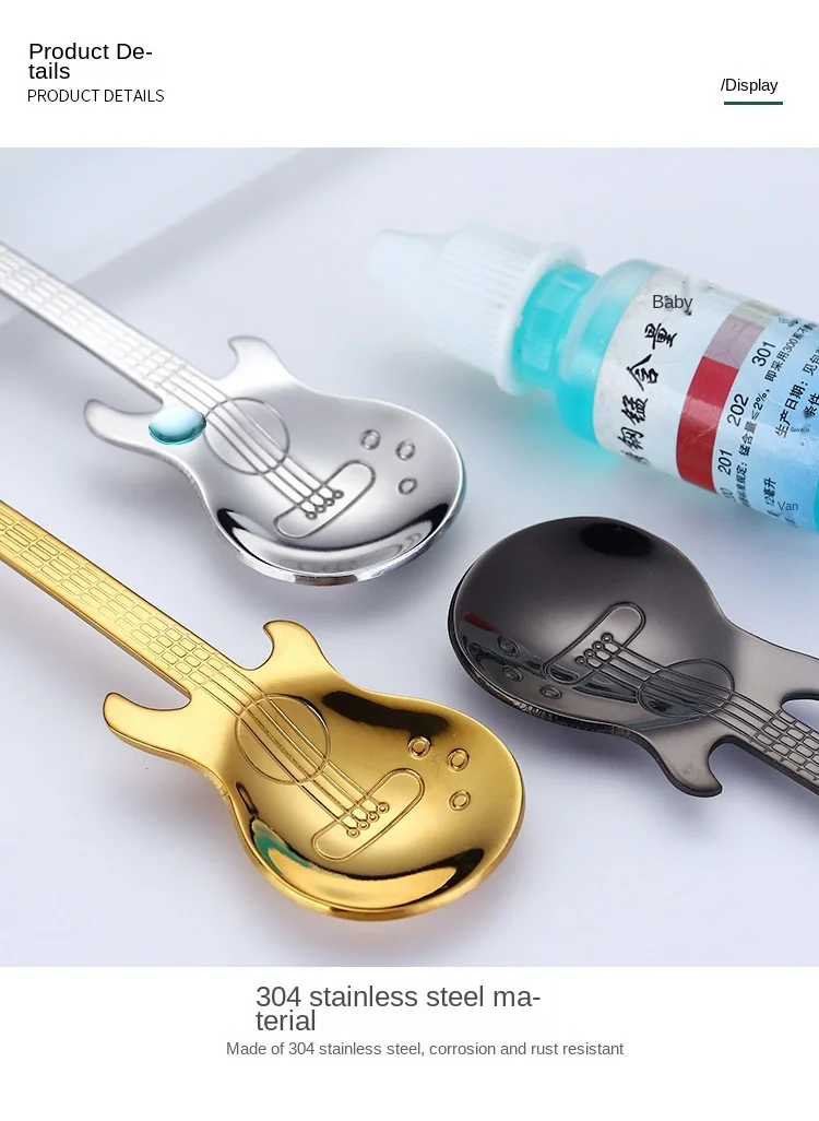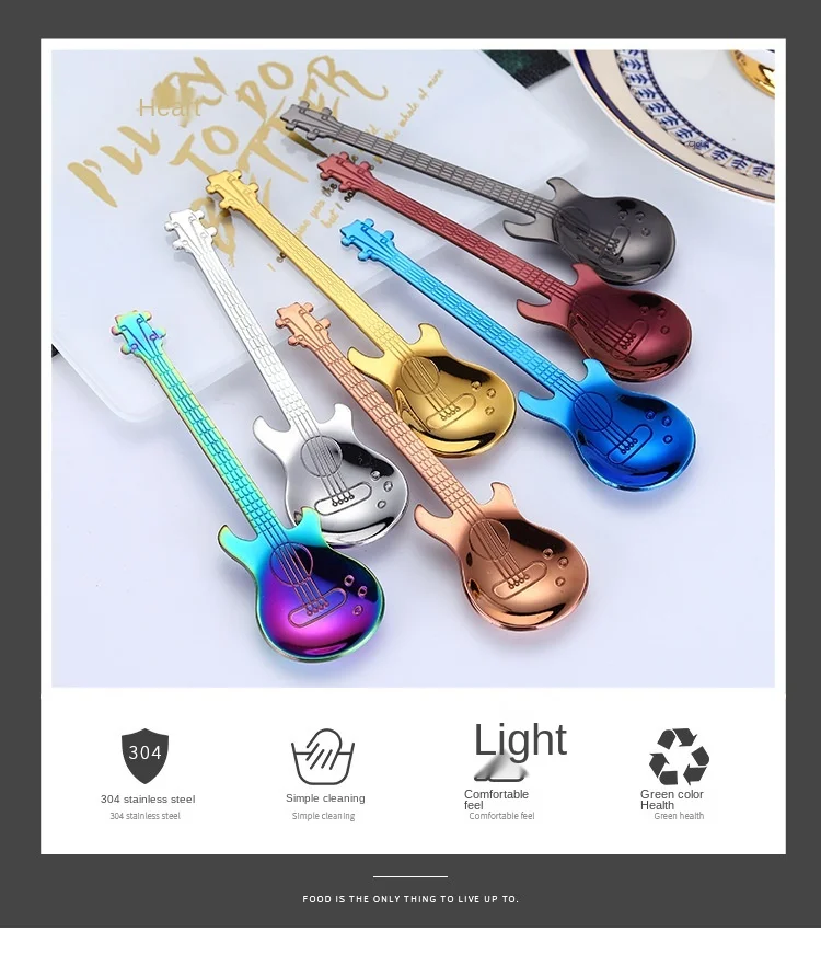Ложка Детская в форме гитары из нержавеющей стали, 7 цветов, 1 шт.,...