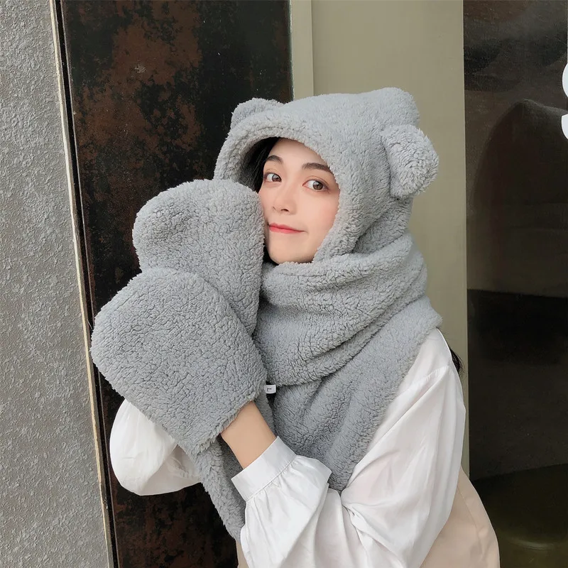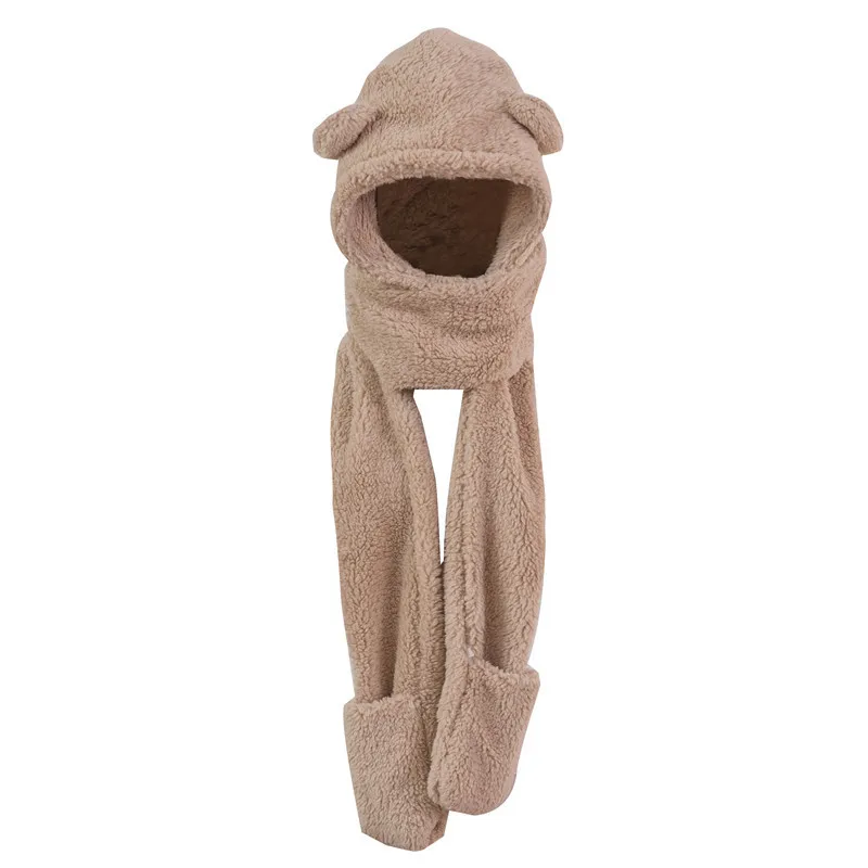 Зимняя женская теплая шапка, шапка для защиты ушей, шарф, перчатки, шапка, трехкомпонентная плюшевая мягкая шапка с капюшоном, шапка с защитой от холода