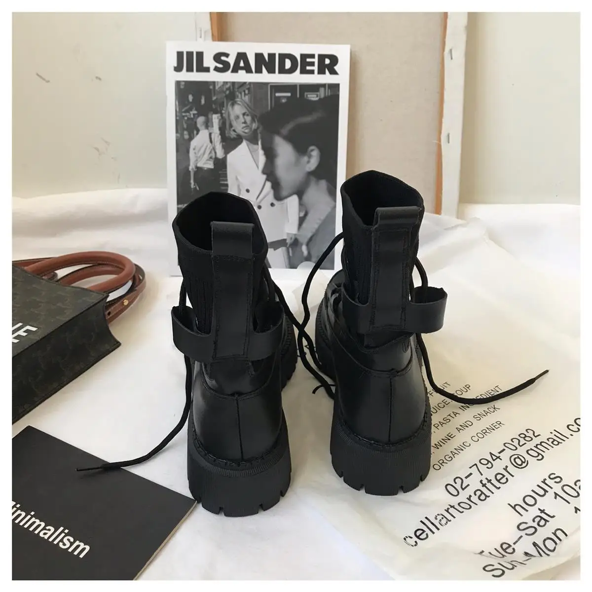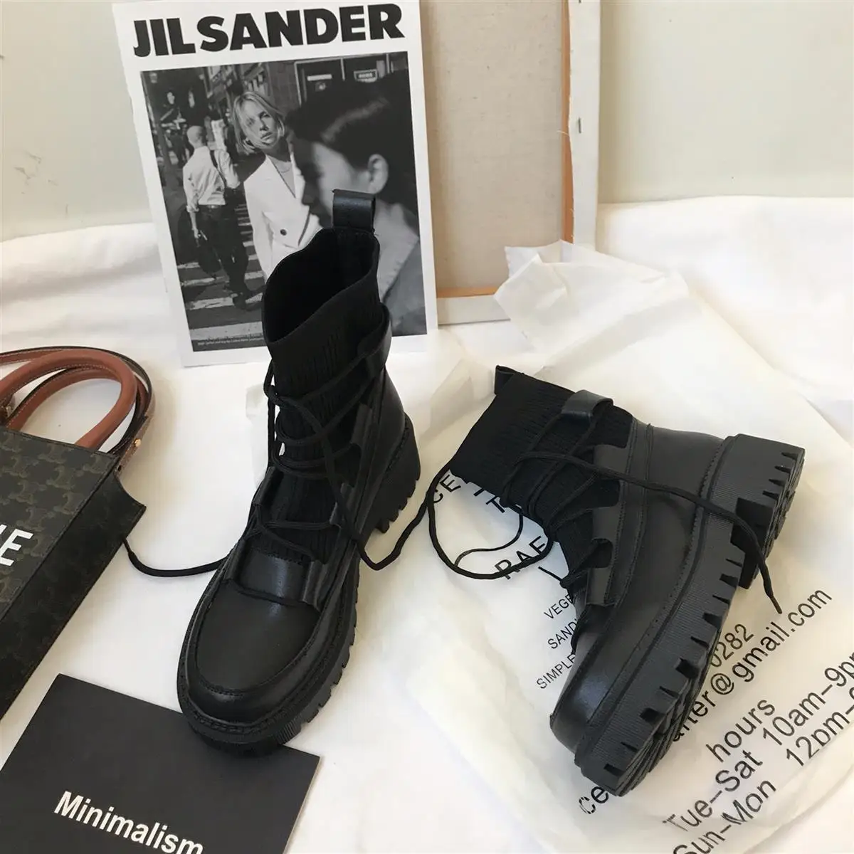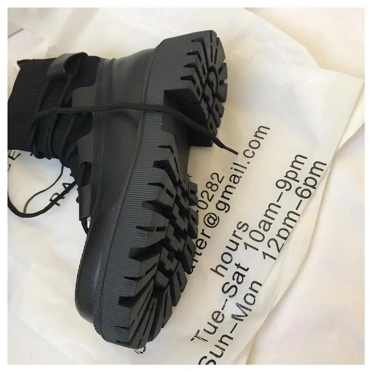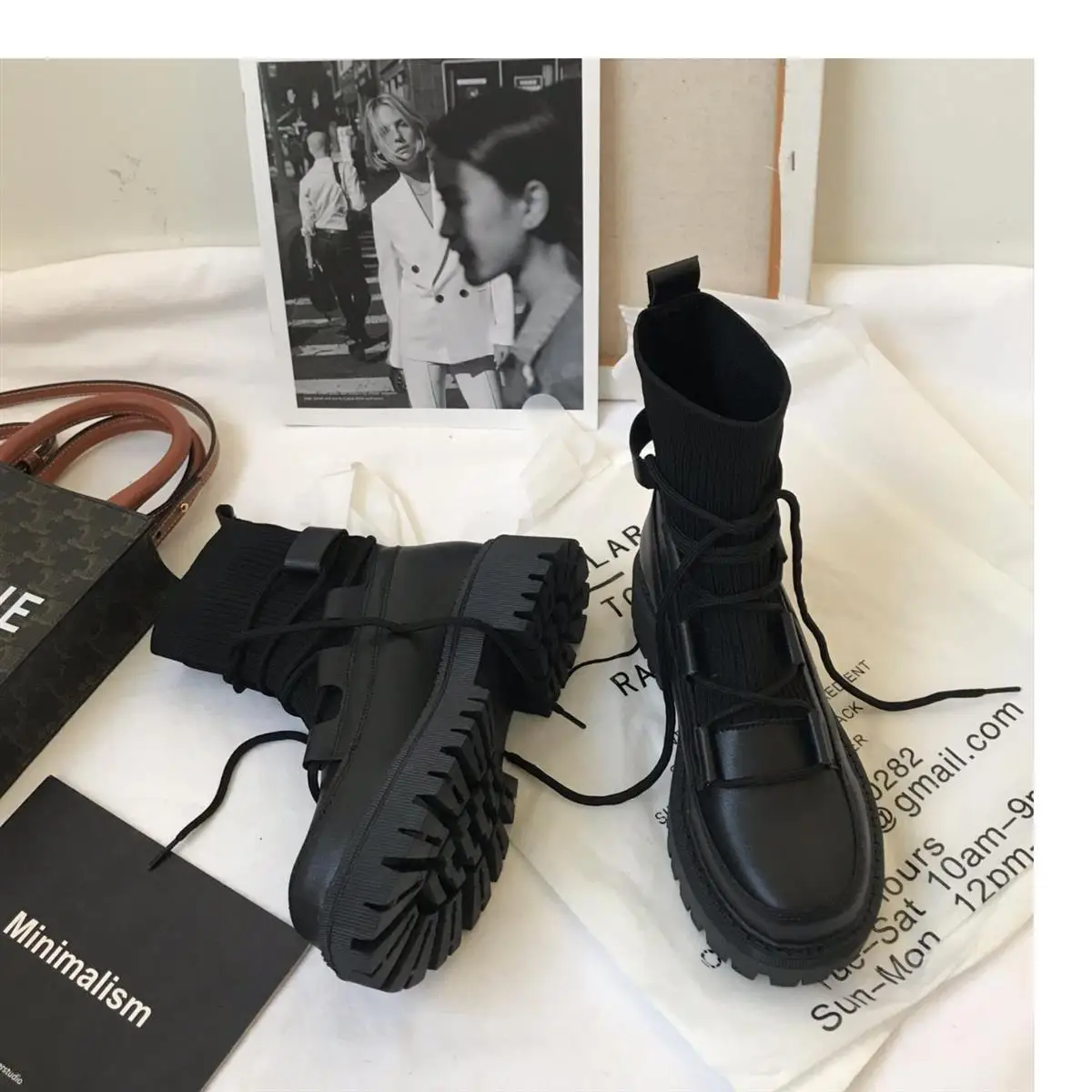 Женские ботильоны на платформе HOUZHOU 2021, вязаные ботинки до середины икры из искусственной кожи в стиле панк, готические черные осенне-зимние ботинки в стиле Харадзюку