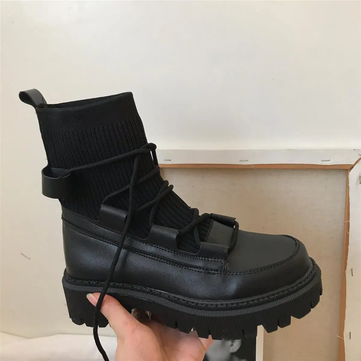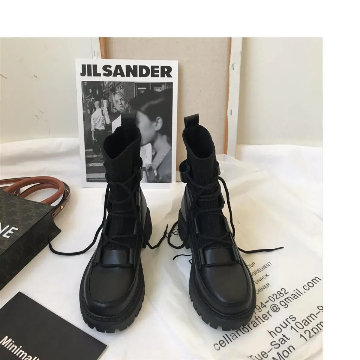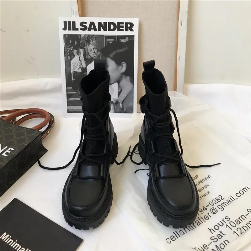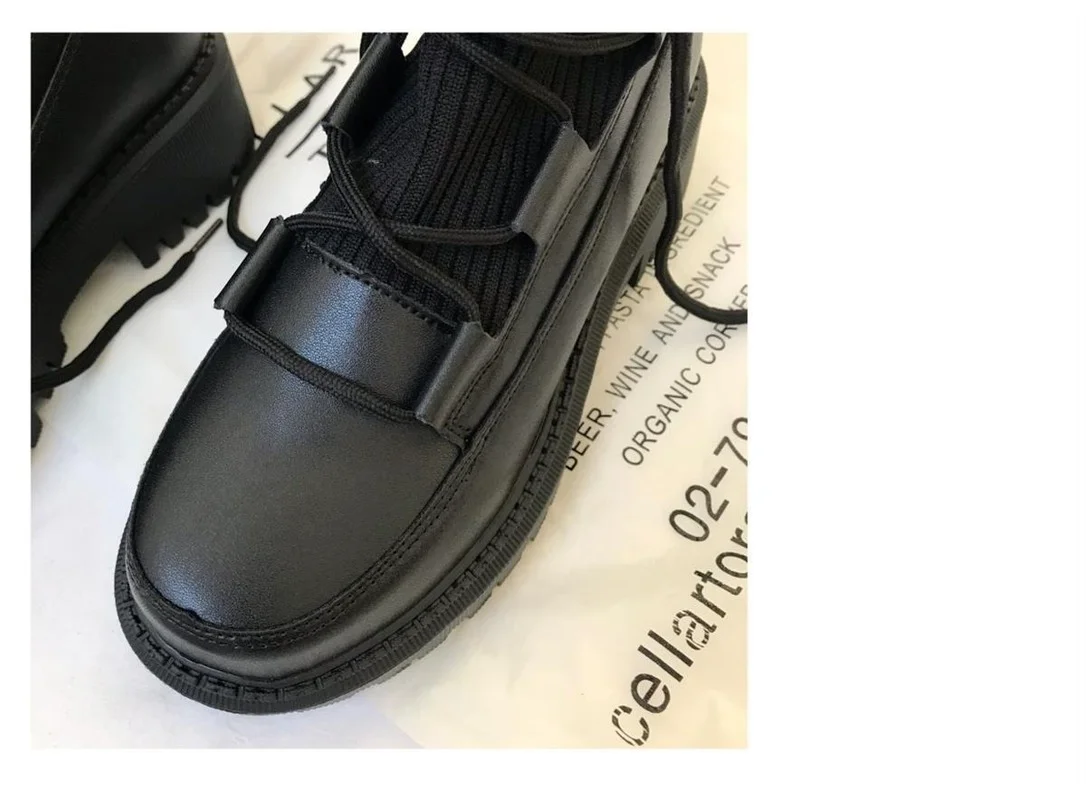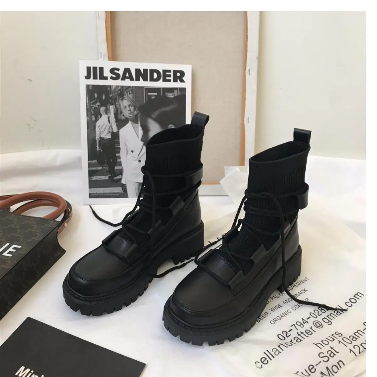 Женские ботильоны на платформе HOUZHOU 2021, вязаные ботинки до середины икры из искусственной кожи в стиле панк, готические черные осенне-зимние ботинки в стиле Харадзюку