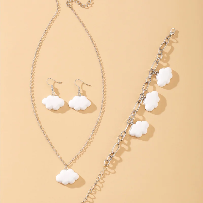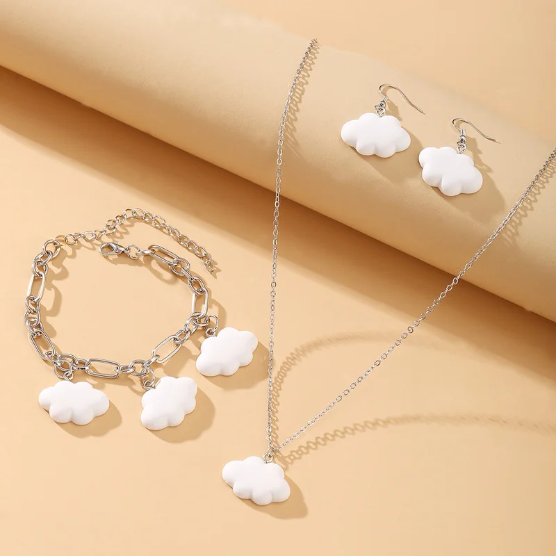 Набор ювелирных изделий из ожерелья и браслета, браслета, сережек, белых облаков