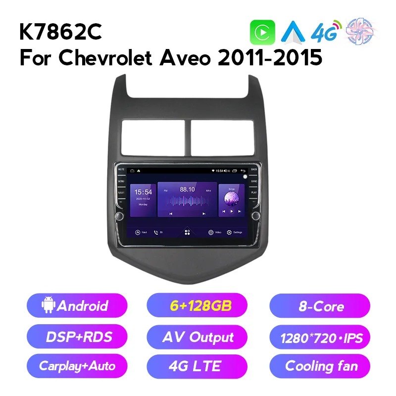 Автомагнитола 6 ГБ + 128 Гб, Android 11, аудио, мультимедийный видеоплеер для Chevrolet Aveo Sonic 2011 2012-2015, GPS-навигация, разъем 2 Din, dvd