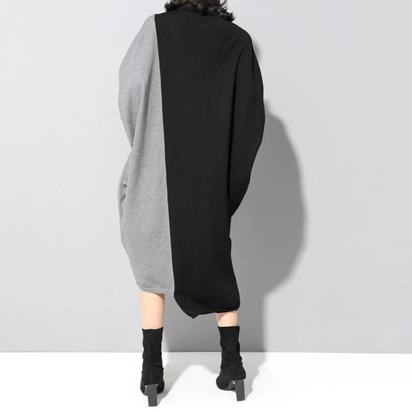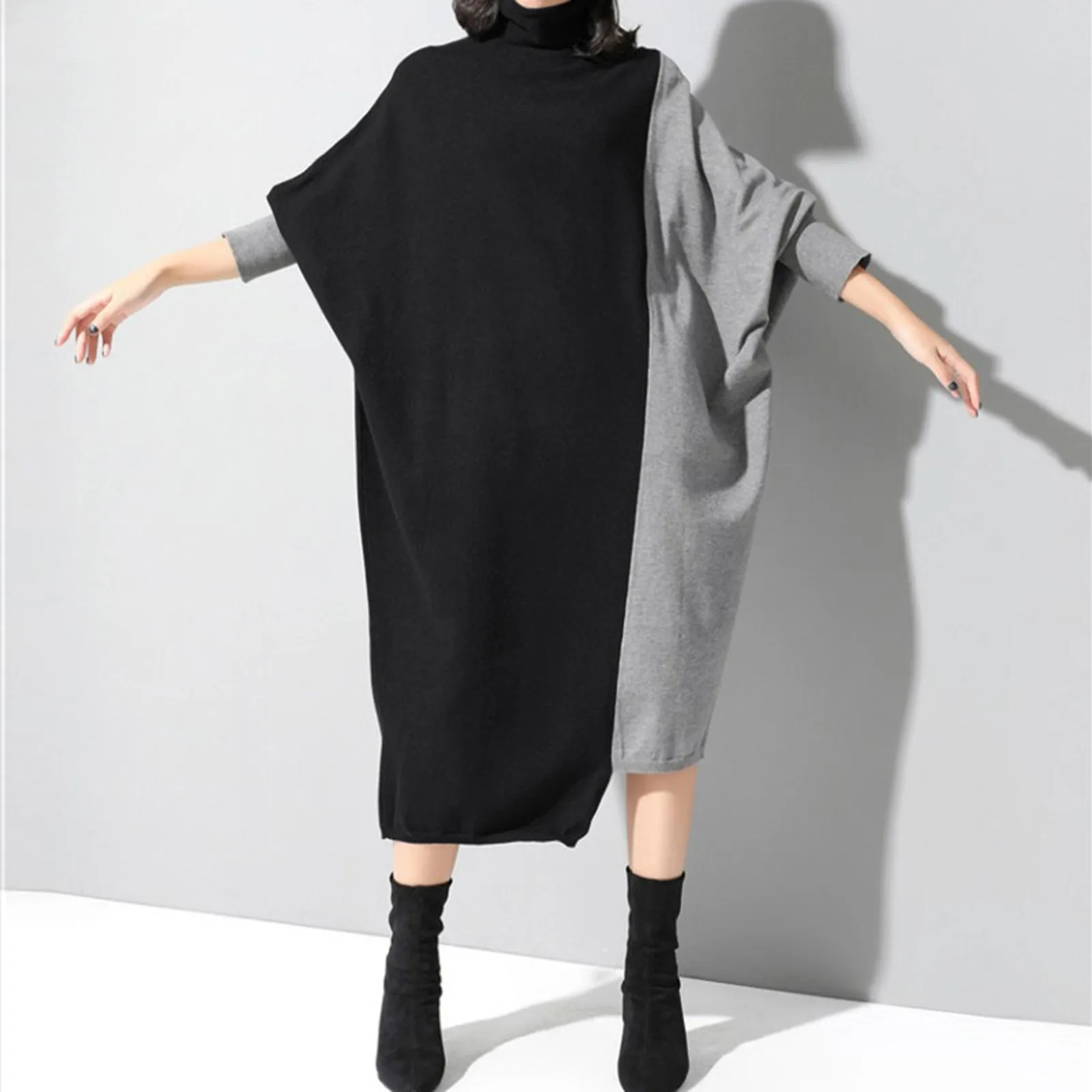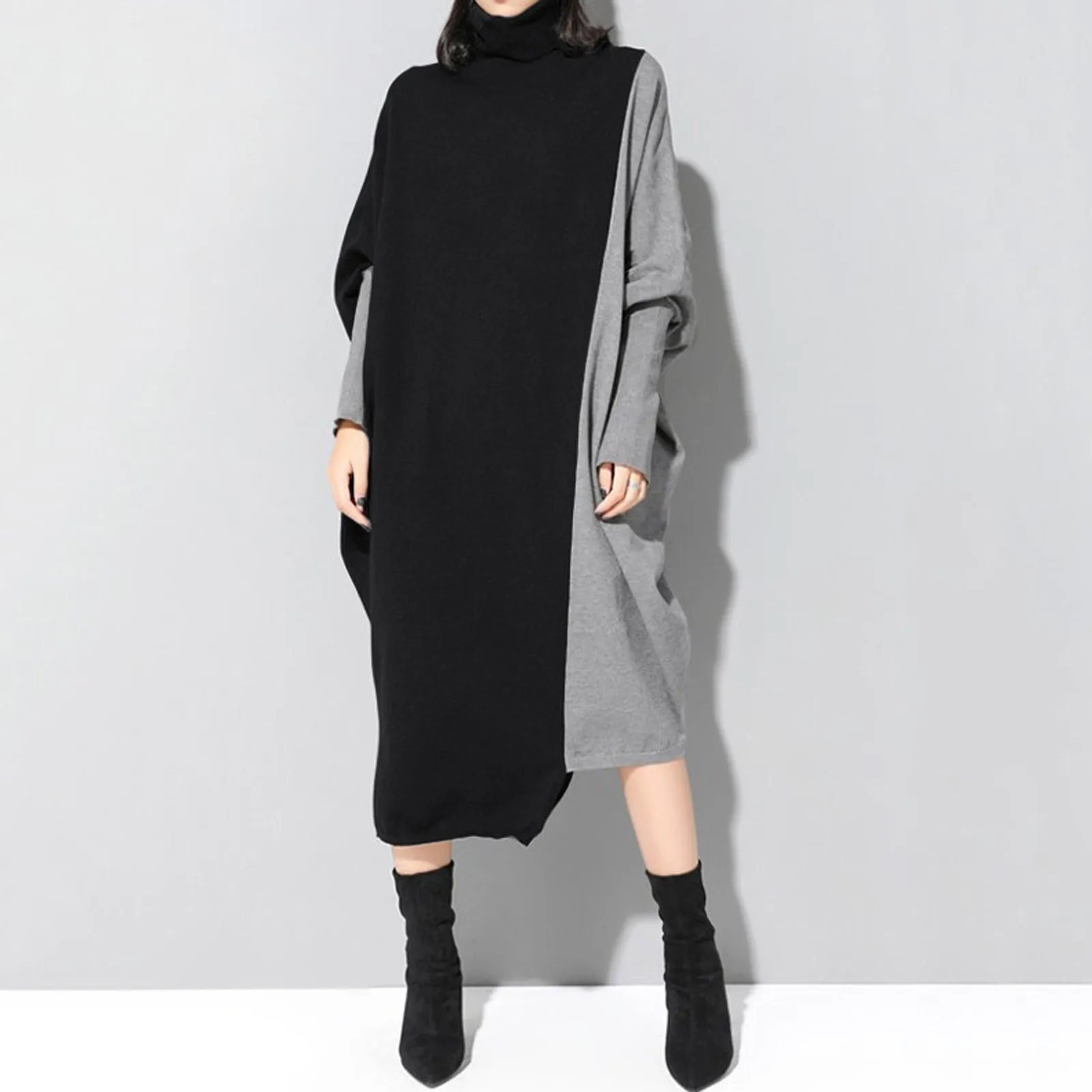 Женское асимметричное трикотажное платье-водолазка средней длины с ...