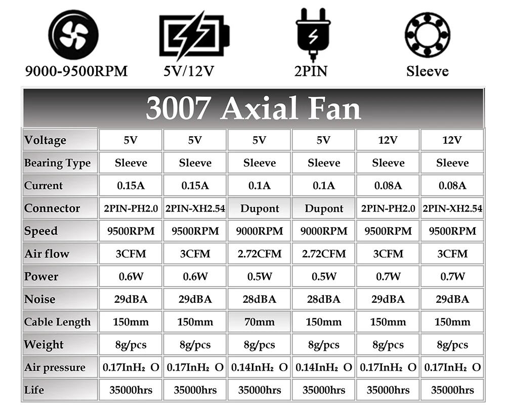Страна: IL Blade Color: 12V Sleeve XH2.54 Blade Quantity: 2Pcs fan Доставка: Standard Shipping 24.01.2023