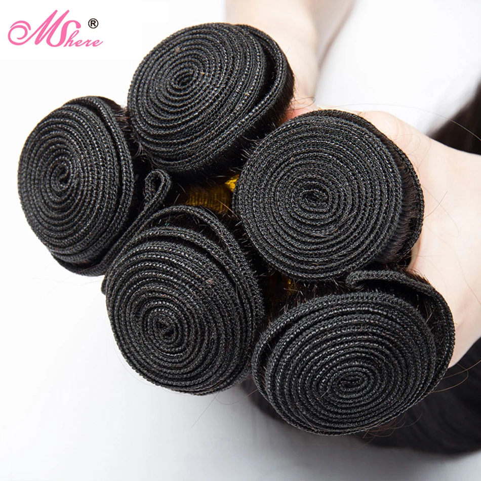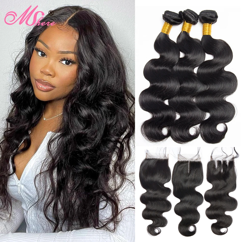 Mshere волосы бразильские 30 дюймов Волнистые пряди для тела с 4x4 закрытием 100% человеческие волосы пряди для наращивания