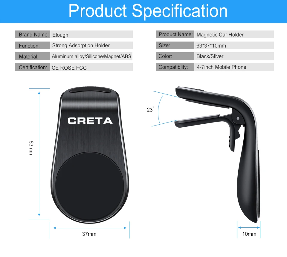 Металлическая наклейка, автомобильный держатель для телефона для Hyundai creta, крепление на вентиляционное отверстие, Магнитная подставка для мобильного телефона, GPS-дисплей, автомобильный держатель на вентиляционное отверстие