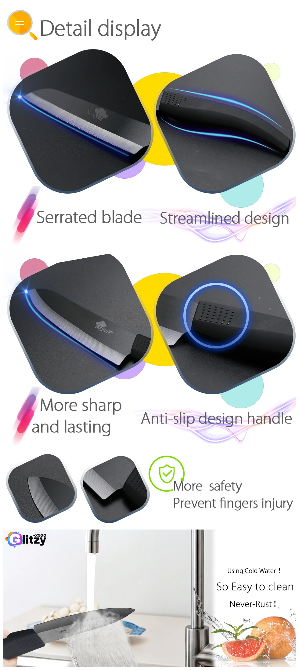 Мойте нож после каждого использования, предпочтительно вручную с мягким моющим средством иНе стиратьВ посудомоечной машине.