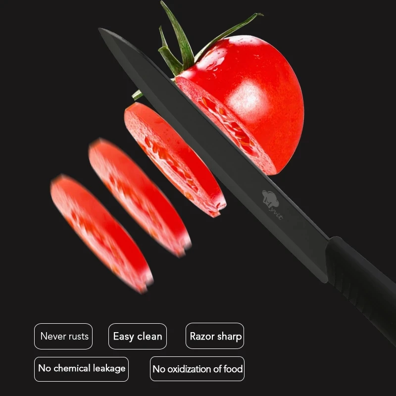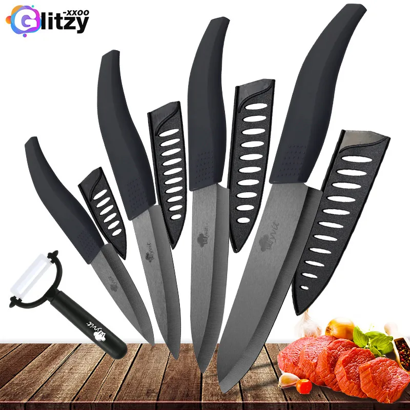 Набор керамических кухонных ножей 3 4 5 6 дюймов, набор зубчатых ножей для хлеба и Овощечистка, лезвие из черного циркония, набор поварских кухонных ножей для фруктов