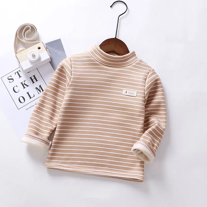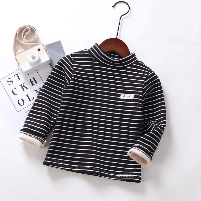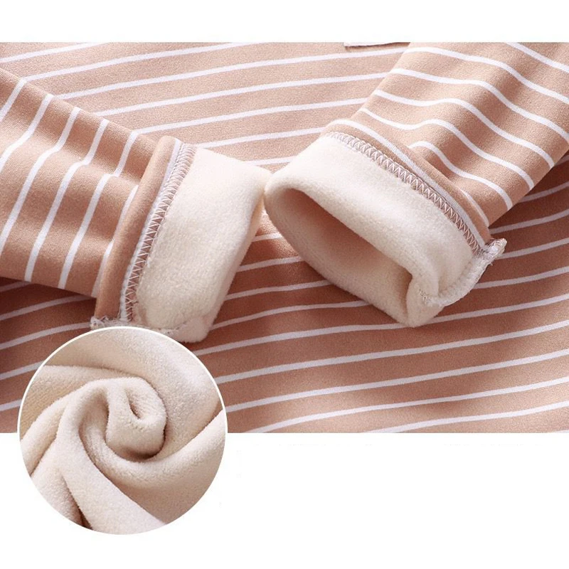 Осенне-зимняя детская одежда, футболки в полоску для мальчиков и девочек, детская флисовая футболка унисекс с подкладкой, пуловер
